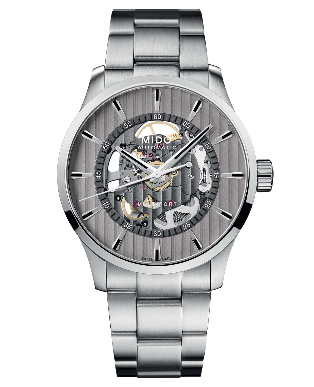 Швейцарские мужские механические часы Mido Multifort Skeleton Vertigo M038.436.11.031.00