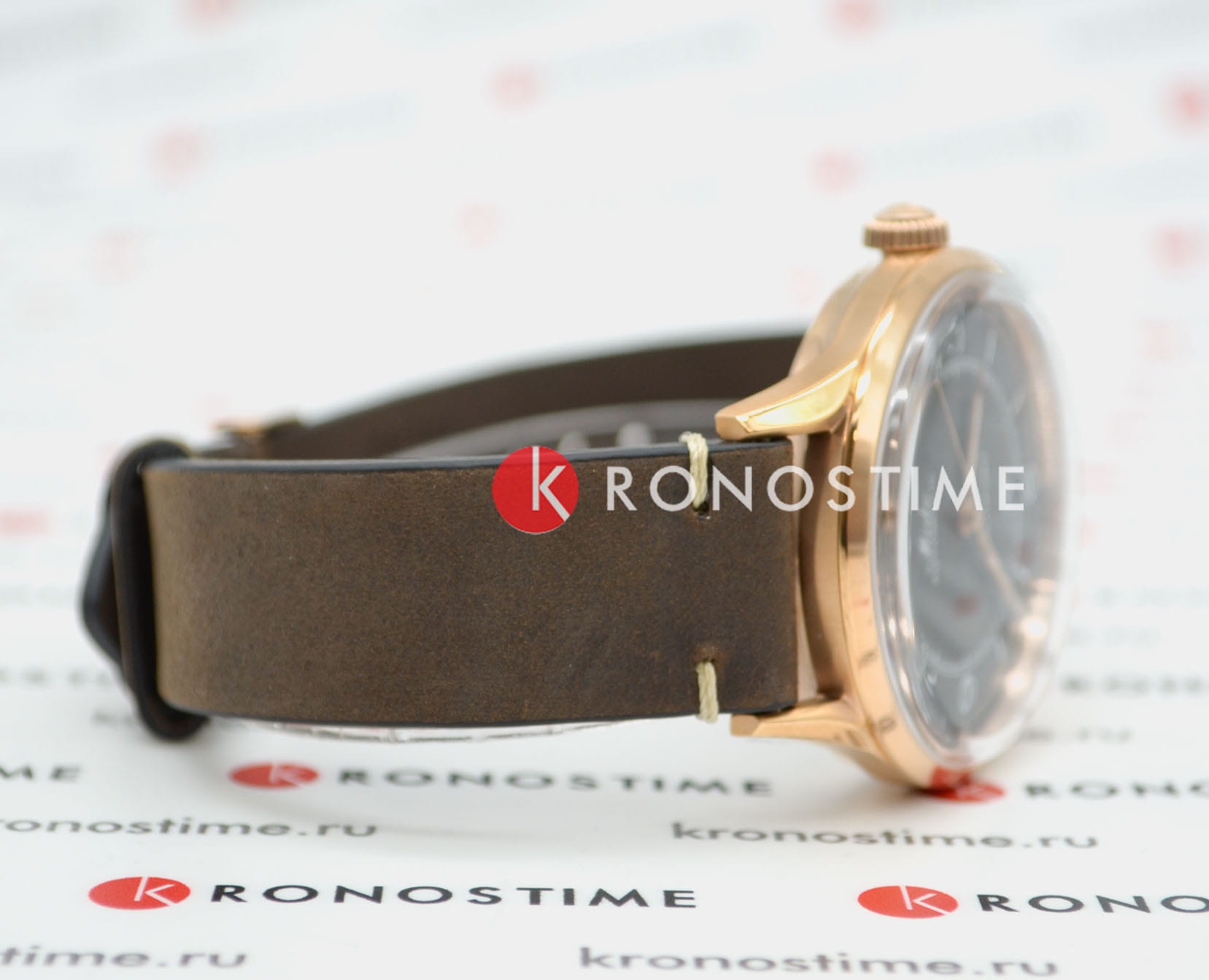 Ремешок из коричневой кожи с обеспечивает комфортное ношение.