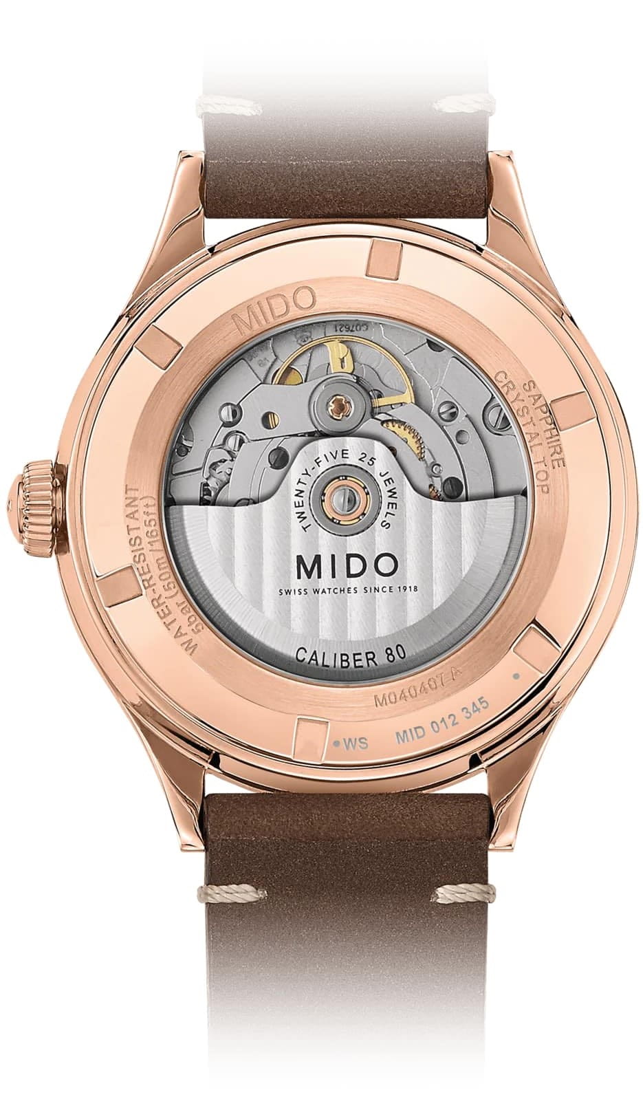 Модель оснащена автоматическим механизмом MIDO Caliber 80 (на базе ETA C07.621), обеспечивающим запас хода до 80 часов.