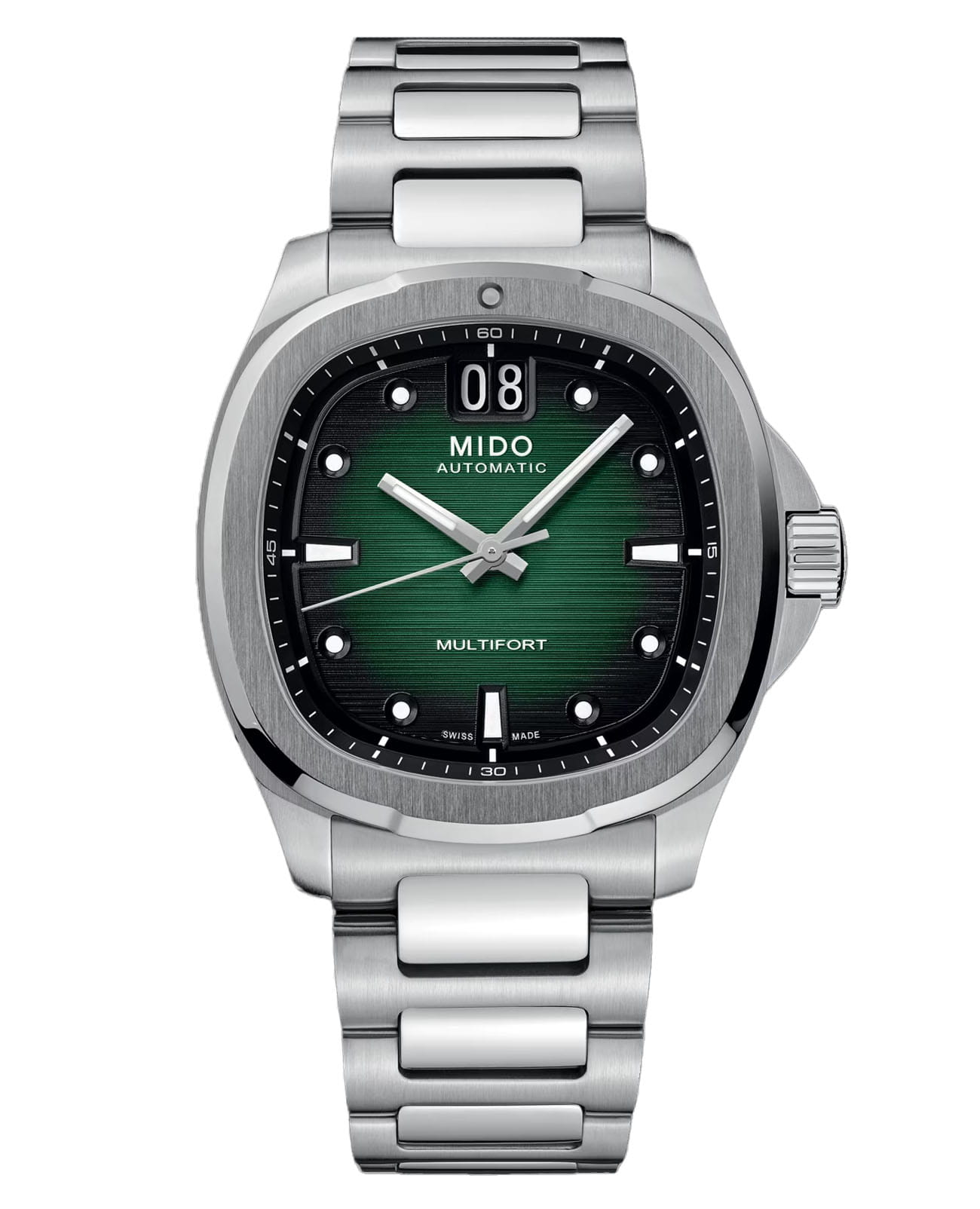 Мужские механические швейцарские часы Mido Multifort TV Big Date M049.526.11.091.00, механический механизм (автоматический калибр) с высокой точностью. Сапфировое стеклоСапфировое стеклоПрочный и надёжный материал из кристалла сапфира синтетического происхождения, характеризующийся особой твёрдостью и устойчивостью к царапинам и повреждениям. устойчивое к появлению царапин, обладающее высокой прозрачностью. Корпус часов изготовлен из нержавеющей стали в форме телевизора, столь же впечатляющий, сколь и точный, благодаря своему мощному механическому механизму. Современный и динамичный дизайн этих швейцарских часов подчеркивается ярким горизонтальным циферблатом с матовой отделкой, а также их отличительной функцией: большой датой в положении 12 часов. Стрелки с люминесцентным покрытиемЛюминесцентное покрытиеПозволяет считывать показания времени в темноте. Производители наносят на стрелки, часовые индексы, безель или поверхность циферблата светонакопительный состав, дающий холодное свечение.. Мощный автоматический механизм последнего поколения Calibre 80 оснащен высокотехнологичной балансировочной пружиной Nivachron ™ , которая обеспечивает исключительную устойчивость к ударам и магнитным полям. Класс водозащиты: 100 метров, позволит плавать, нырять и заниматься другими водными видами спорта. Стальной браслет на раскладной застёжкеРаскладная застёжкаТакой тип застёжки используется только на браслетах из металла. Она никогда не раскрывается полностью, происходит разделение на 2 и более частей. Раскладывающая застёжка снизит вероятность потери часов к минимуму..
