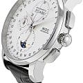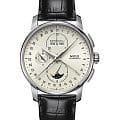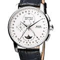 Швейцарские мужские наручные часы Mido Baroncelli 8607.4.M1.42, механический механизм (автоматический калибр) с высокой точностью. Сапфировое стеклоСапфировое стеклоПрочный и надёжный материал из кристалла сапфира синтетического происхождения, характеризующийся особой твёрдостью и устойчивостью к царапинам и повреждениям. устойчивое к появлению царапин, обладающее высокой прозрачностью. Класс водозащиты: 50 метров, позволит защитить корпус от случайных брызг или капель дождя. Корпус часов изготовлен из стали, серебристого цвета. В модели есть хронографХронографФункция позволяет измерять отрезки времени с особой точностью: часы, минуты, секунды. Верным признаком хронографа является наличие на циферблате 3 дополнительных окошек-счётчиков., 12-часовой счетчик расположен на 6 часов, 30-минутный на 12 часов и малая секунда на 9 часов. Центральная стрелка-указатель даты, апертура месяца и дня недели лаконично расположена на 12 часов, индикатор фазы луны.