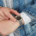 Модель идеально впишется в любой образ благодаря стильному браслету миланского плетения с регулируемой застёжкой, наручные часы выглядят как ювелирное украшение. Классическое исполнение позволяет использовать аксессуар в качестве дополнения к офисному костюму, не выходя из рамок дресс-кода. Высокая точность хода обеспечивается кварцевым калибром Miyota 1330. Пластиковый ударопрочный корпусУдаропрочный корпусМеханизм заключён в корпус, выполненный из современных материалов, устойчивых к ударам, механическим повреждениям и падению с высоты: инновационный пластик, карбон, нержавеющая сталь, титан. имеет металлическую покраску. Пластиковое стекло не разбивается при падении. Водонепроницаемость 3 бар. Габариты: 38,8 x 34,9 x 7,8 мм.