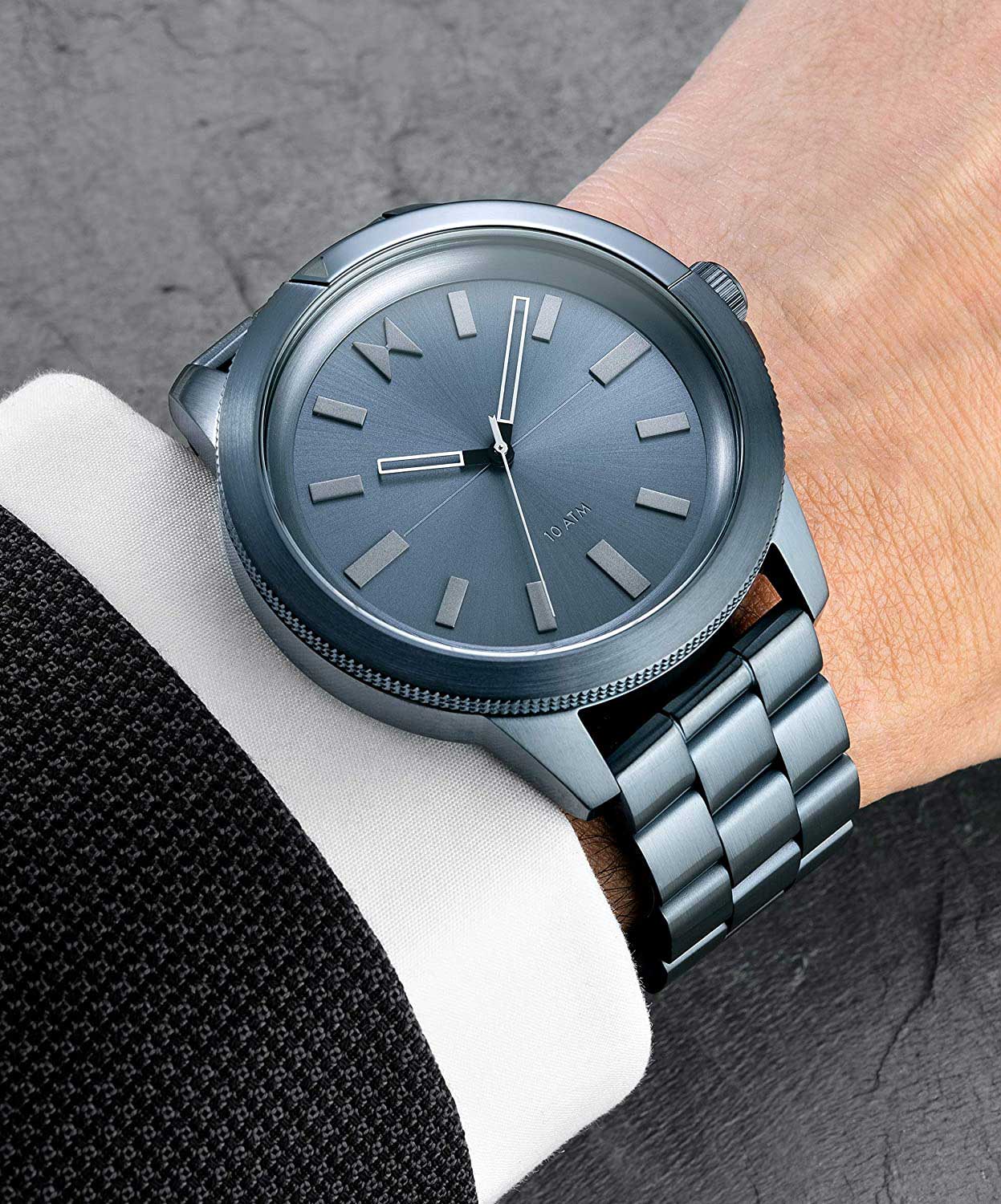 Мужские кварцевые часы MVMT 28000076-D – лаконичная красота и изысканная элегантность. Оригинальная модель с классическим оформлением станет превосходным завершением образа, наделив его индивидуальным характером. Корпус выполнен из нержавеющей стали с IP-покрытиемIP-покрытиеМетод ионного напыления. Демонстрирует повышенную устойчивость к истиранию, окислению и химическим веществам. Под воздействием высокого давления и температуры около 1500°C молекулы металла надёжно соединяются с частицами корпуса часов. темно-синего цвета, диаметром 45 мм и толщиной 12 мм, что обеспечивает долговечность и надежность. Закаленное минеральное стеклоМинеральное стеклоМинеральное стекло представляет собой искусственно выращенный минерал кварца. Такое стекло отличается особой устойчивостью к повреждениям и царапинам. Уступает по некоторым качествам сапфировому стеклу. защищает циферблат от царапин. Стальной браслет с IP-покрытиемIP-покрытиеМетод ионного напыления. Демонстрирует повышенную устойчивость к истиранию, окислению и химическим веществам. Под воздействием высокого давления и температуры около 1500°C молекулы металла надёжно соединяются с частицами корпуса часов. на раскладной застёжке с фиксаторомРаскладная застёжкаТакой тип застёжки используется только на браслетах из металла. Она никогда не раскрывается полностью, происходит разделение на 2 и более частей. Раскладывающая застёжка снизит вероятность потери часов к минимуму. обеспечивает комфортное ношение. Водозащита 100 метров позволит плавать, нырять и заниматься другими водными видами спорта. Рифленая заводная головка с защитой. Это аксессуар для мужчины, который ценит классический стиль и функциональность.