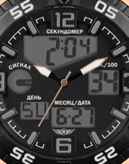 Часы оснащены японским кварцевым механизмом с аналогово-цифровой индикацией, обеспечивая точный ход и дополнительные возможности измерения времени. Циферблат защищён минеральным стекломМинеральное стеклоМинеральное стекло представляет собой искусственно выращенный минерал кварца. Такое стекло отличается особой устойчивостью к повреждениям и царапинам. Уступает по некоторым качествам сапфировому стеклу., устойчивым к царапинам. Установлена классическая застёжка-пряжка, обеспечивая надёжную фиксацию на запястье. Модель обладает водонепроницаемостью до 100 метров, что делает её подходящей для плавания и сноркелинга.