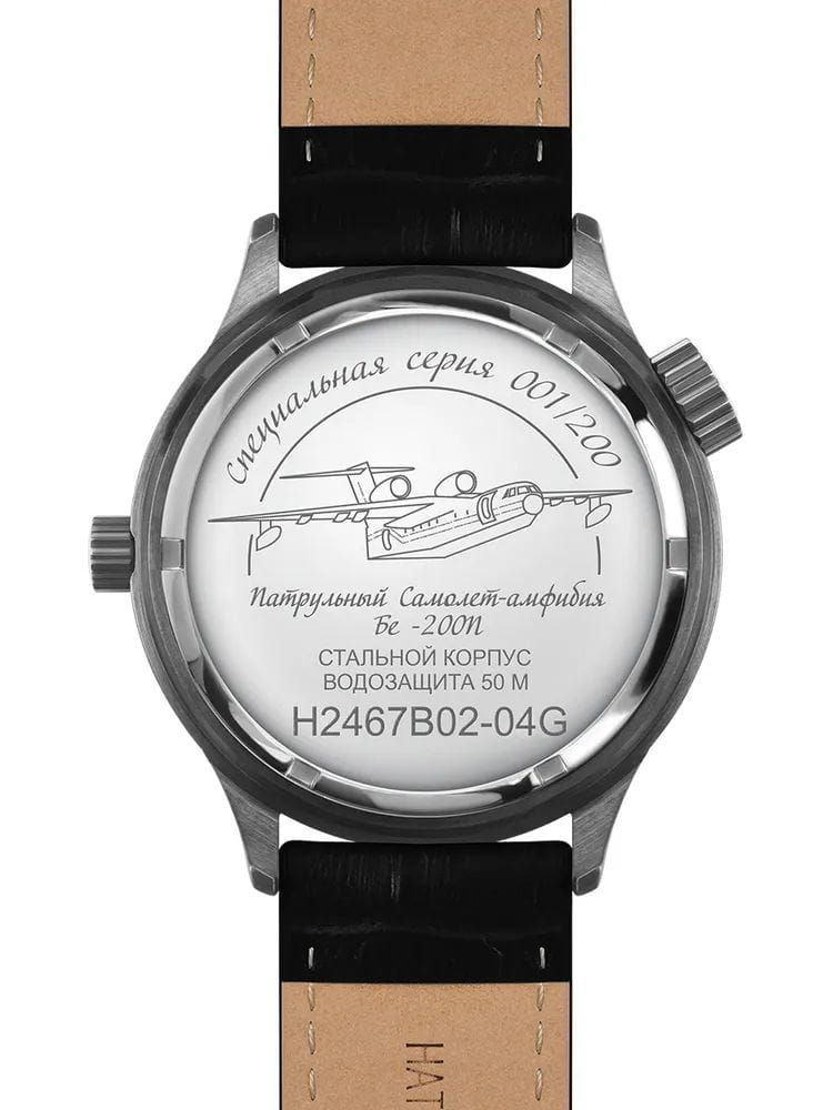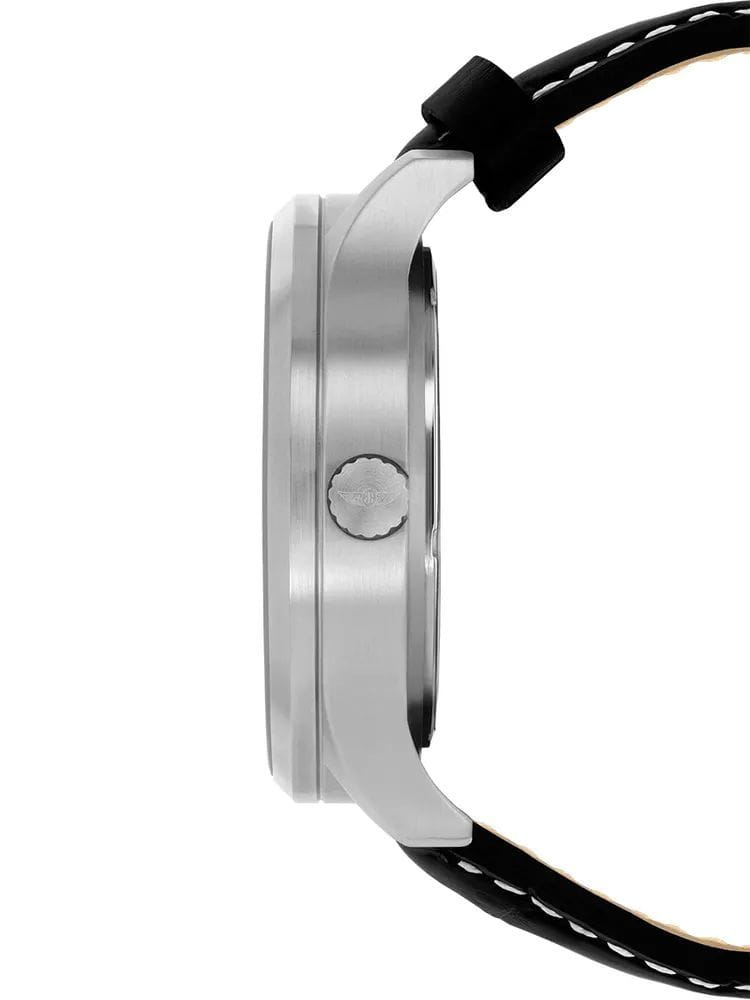 Ремешок выполнен из натуральной кожи чёрного цвета, обеспечивая комфорт при носке. Толщина корпуса составляет 14 мм, что придаёт часам солидный вид.