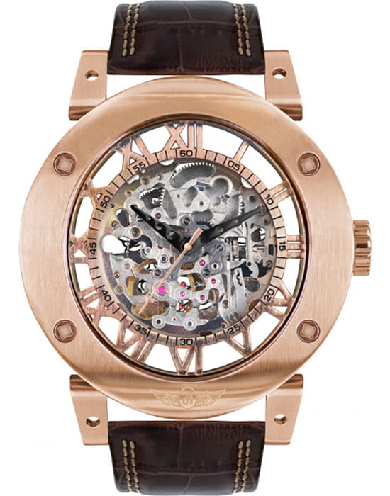 Модель Нестеров H2644F52-13RG — это элегантные мужские часы, сочетающие в себе классический дизайн и надёжность. Корпус диаметром 46 мм выполнен из нержавеющей стали с PVD-покрытиемPVDУльтратонкое покрытие наносится в технике вакуумного напыления, сочетает в себе нитрид титана особой прочности со слоем золота или оксида хрома. Несёт в себе декоративную или защитную функцию. в золотистом цвете, подчёркивая прочность и изысканность конструкции. Скелетонизированный циферблат с римскими цифрами и стрелками, обеспечивает отличную читаемость в любых условиях.