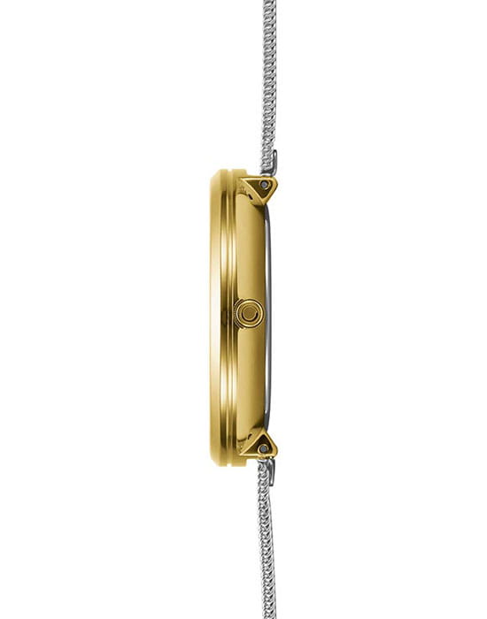 Женские наручные часы на стальном браслете Obaku Mesh V211LXGIMC, кварцевый механизм с высокой точностью. Класс водозащиты: 30 метров, позволит защитить корпус от случайных брызг или капель дождя. Корпус часов изготовлен из матовой стали с IP-покрытиемIP-покрытиеМетод ионного напыления. Демонстрирует повышенную устойчивость к истиранию, окислению и химическим веществам. Под воздействием высокого давления и температуры около 1500°C молекулы металла надёжно соединяются с частицами корпуса часов. цвета желтого золота. Стальной браслет выполнен в технике миланского плетения, раскладная застёжкаРаскладная застёжкаТакой тип застёжки используется только на браслетах из металла. Она никогда не раскрывается полностью, происходит разделение на 2 и более частей. Раскладывающая застёжка снизит вероятность потери часов к минимуму.. Прочное минеральное стеклоМинеральное стеклоМинеральное стекло представляет собой искусственно выращенный минерал кварца. Такое стекло отличается особой устойчивостью к повреждениям и царапинам. Уступает по некоторым качествам сапфировому стеклу. устойчивое к мелким механическим повреждениям.