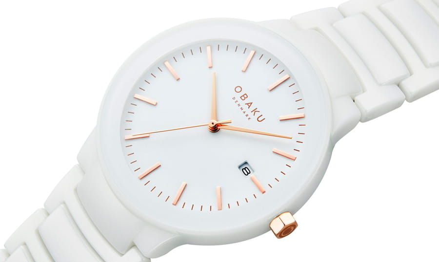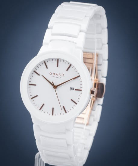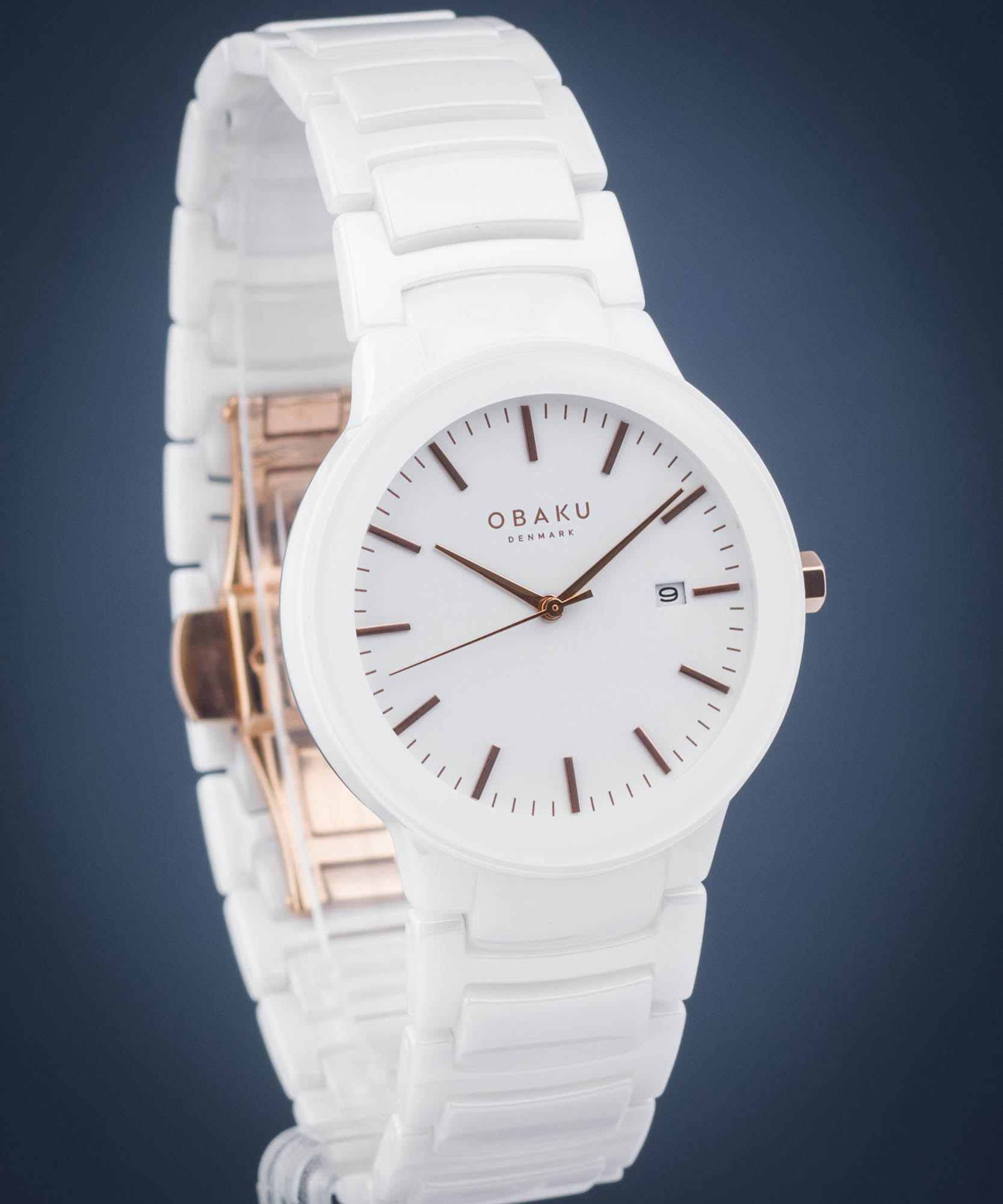 Женские датские кварцевые керамические часы с сапфировым стекломСапфировое стеклоПрочный и надёжный материал из кристалла сапфира синтетического происхождения, характеризующийся особой твёрдостью и устойчивостью к царапинам и повреждениям., устойчивым к появлению царапин, обладающим высокой прозрачностью, Obaku Pil Lille V280LDWWCW. Класс водозащиты: 30 метров, позволит защитить корпус от случайных брызг или капель дождя. Корпус часов изготовлен из керамики. Керамический браслет на раскладной застёжкеРаскладная застёжкаТакой тип застёжки используется только на браслетах из металла. Она никогда не раскрывается полностью, происходит разделение на 2 и более частей. Раскладывающая застёжка снизит вероятность потери часов к минимуму.. Окошко даты находится в положении 3 часа.