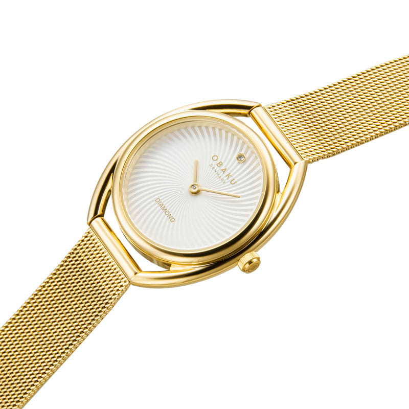 Женские наручные кварцевые часы с минеральным стекломМинеральное стеклоМинеральное стекло представляет собой искусственно выращенный минерал кварца. Такое стекло отличается особой устойчивостью к повреждениям и царапинам. Уступает по некоторым качествам сапфировому стеклу. Obaku Diamond V286LXGIMG, кварцевый механизм с высокой точностью. Класс водозащиты: 30 метров, позволит защитить корпус от случайных брызг или капель дождя. Корпус часов изготовлен из стали с IP-покрытиемIP-покрытиеМетод ионного напыления. Демонстрирует повышенную устойчивость к истиранию, окислению и химическим веществам. Под воздействием высокого давления и температуры около 1500°C молекулы металла надёжно соединяются с частицами корпуса часов.. Стальной браслет на раскладной застёжкеРаскладная застёжкаТакой тип застёжки используется только на браслетах из металла. Она никогда не раскрывается полностью, происходит разделение на 2 и более частей. Раскладывающая застёжка снизит вероятность потери часов к минимуму. с IP-покрытиемIP-покрытиеМетод ионного напыления. Демонстрирует повышенную устойчивость к истиранию, окислению и химическим веществам. Под воздействием высокого давления и температуры около 1500°C молекулы металла надёжно соединяются с частицами корпуса часов.. Белый циферблат декорирован бриллиантом.