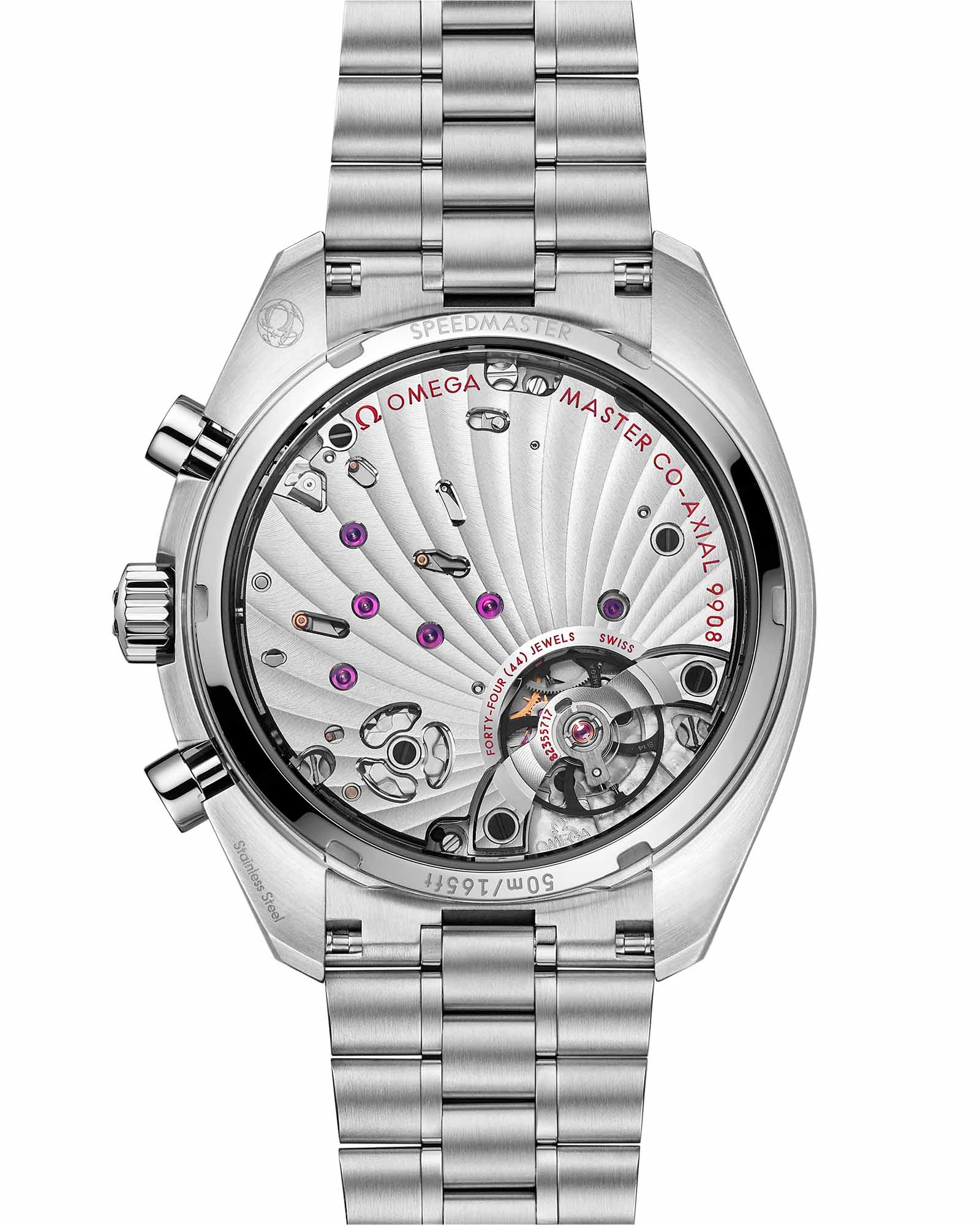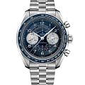 Chronoscope возрождает дух винтажных хронографов OMEGA 1940-х, мастерски соединяя его с узнаваемой эстетикой Speedmaster. 43-мм корпус из нержавеющей стали с синим безелемБезельВнешний ободок, закрепляющий стекло. В спортивных часах так называется поворотное кольцо с делениями на циферблате, выполняет роль таймера – замеряет отрезки времени на шкале. Неподвижный безель – элемент декора. Однонаправленно вращающийся безель на дайверских часах позволяет фиксировать моменты погружения и выныривания на поверхность. из анодированного алюминия демонстрирует насыщенный синий циферблат с серебристыми счетчиками и спиралевидным узором. Стрелки в форме листьев и арабские цифры с родиевым покрытием дополняют ретро-образ. Циферблат украшают три винтажные шкалы в форме улитки: тахиметрическаяТахиметрРазмеченная шкала, располагается на ободке или безеле часов. Тахиметр позволяет рассчитать скорость на определённом участке пути, расстояние измеряется в километрах или милях., пульсометрическая и телеметрическая. На позиции "9 часов" расположен секундный счетчик, а на "3 часах" - 60-минутный и 12-часовой индикаторы. Модель с стальным браслетом оснащена инновационным калибром OMEGA Co-Axial Master Chronometer 9908, объединяя историческое наследие с современными технологиями точности.