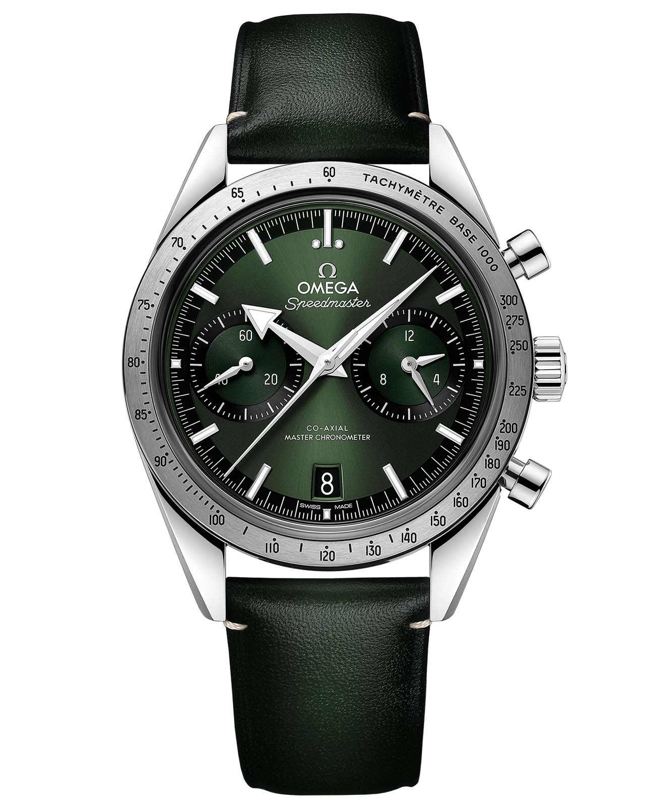 Speedmaster — это не просто часы, а живая легенда OMEGA, прошедшая через все шесть лунных миссий и ставшая олицетворением смелости человеческого духа. 40,5-миллиметровый корпус из нержавеющей стали, вдохновленный легендарным дизайном 1957 года, сочетается с глубоким черным циферблатом, где каждый элемент продуман до мелочей. Углубленные часовые метки, подсвеченные винтажным составом Super-LumiNova, создают неповторимый образ. Стрелки «Broad Arrow» с родиевым покрытием гармонично сочетаются с функциональными элементами: указателем даты на «6 часах», малой секундной стрелкой на «9 часах» и счетчиками хронографаХронографФункция позволяет измерять отрезки времени с особой точностью: часы, минуты, секунды. Верным признаком хронографа является наличие на циферблате 3 дополнительных окошек-счётчиков. на «3 часах». Сатинированный безельБезельВнешний ободок, закрепляющий стекло. В спортивных часах так называется поворотное кольцо с делениями на циферблате, выполняет роль таймера – замеряет отрезки времени на шкале. Неподвижный безель – элемент декора. Однонаправленно вращающийся безель на дайверских часах позволяет фиксировать моменты погружения и выныривания на поверхность. с черненой тахиметрической шкалой придает часам спортивный характер, а плоское сапфировое стеклоСапфировое стеклоПрочный и надёжный материал из кристалла сапфира синтетического происхождения, характеризующийся особой твёрдостью и устойчивостью к царапинам и повреждениям. задней крышки с антибликовым покрытием эффектно демонстрирует гравировку «Speedmaster '57». Внутри бьется сердце этих часов — калибр OMEGA Co-Axial Master Chronometer 9906 с ручным заводом, воплощающий в себе лучшие традиции часового искусства. Завершает образ ремешок из кожи зеленого цвета с застежкой, украшенной рельефным логотипом OMEGA.