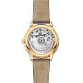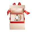 обрамляет изысканный циферблат из белого перламутра, где стрелки с покрытием из желтого золота18-каратное золотоОбозначение по каратной системе пробирования, оно показывает, сколько драгоценного металла содержится в изделии. 18 карат - в составе 75% чистого золота, соответствует 750 пробе.