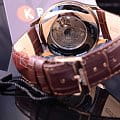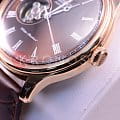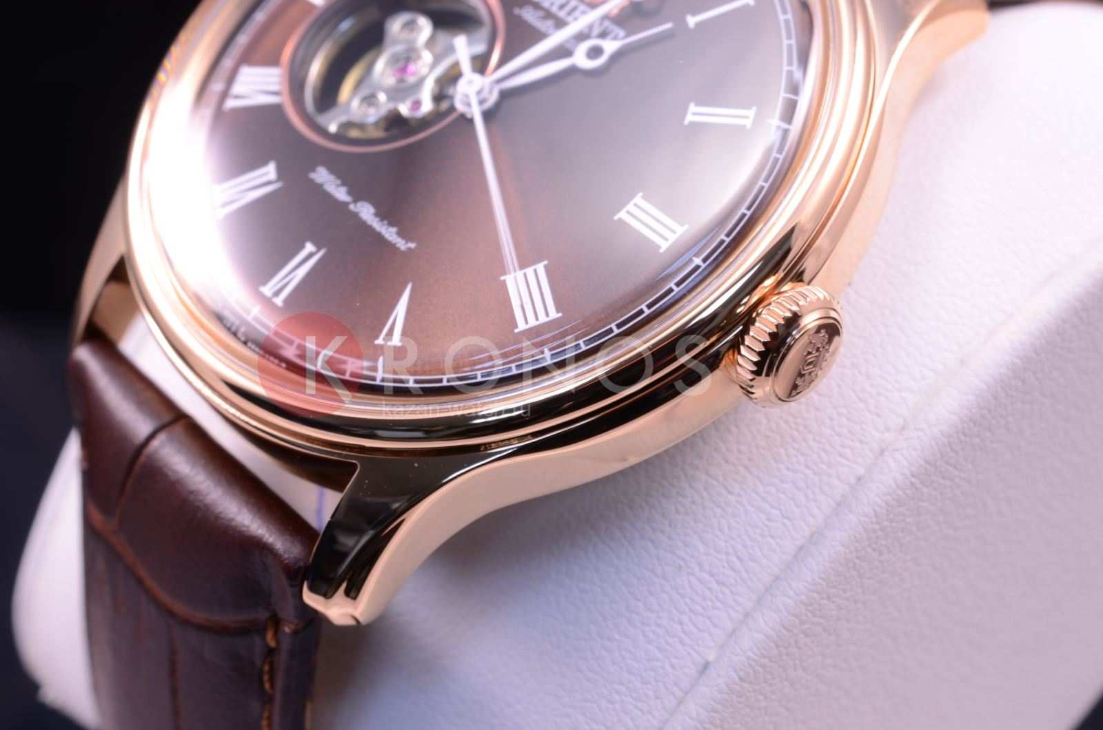 Orient Envoy Classic Open Heart AG00001T — это элегантные часы с утонченным классическим дизайном и надежным механизмом. Корпус диаметром 43 мм выполнен из нержавеющей стали с PVD-покрытиемPVDУльтратонкое покрытие наносится в технике вакуумного напыления, сочетает в себе нитрид титана особой прочности со слоем золота или оксида хрома. Несёт в себе декоративную или защитную функцию. розового цвета, что придаёт модели изысканный и стильный вид. Коричневый циферблат украшен римскими цифрами и тонкими стрелками, обеспечивающими отличную читаемость. Окошко "Open Heart" на отметке 9 часов позволяет наблюдать за работой механизма. Защитное минеральное стеклоМинеральное стеклоМинеральное стекло представляет собой искусственно выращенный минерал кварца. Такое стекло отличается особой устойчивостью к повреждениям и царапинам. Уступает по некоторым качествам сапфировому стеклу. с выпуклой формой добавляет часам винтажную эстетику. Внутри установлен автоматический механизм Orient калибра F6T22 с функцией ручного подзавода и стоп-секунды, обеспечивающий точность и запас хода до 40 часов. Модель укомплектована коричневым кожаным ремешком с тиснением под крокодила, а классическая застёжка обеспечивает комфортное и надежное ношение. Водонепроницаемость 50 метров защищает часы от брызг и кратковременного контакта с водой, делая их отличным выбором для повседневного использования.