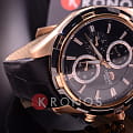 Корпусе из нержавеющей стали, с черным циферблатом и классическим кожаным ремешком Часовые метки в виде крупных белых арабских цифр, дополнительный циферблат хронографа на 30 минут и удобное окошко даты