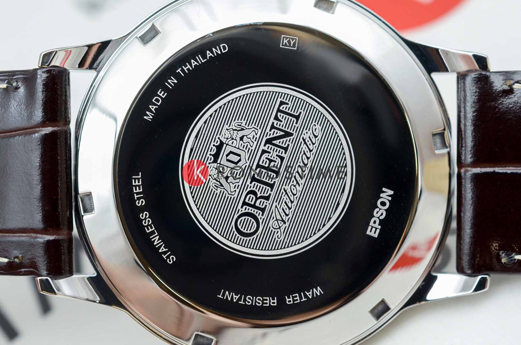 Orient AC00009N (Bambino Version II) — классическая модель с выразительным винтажным характером. Корпус диаметром 40,5 мм выполнен из нержавеющей стали с полированной отделкой, благодаря чему часы смотрятся элегантно и сдержанно. Толщина корпуса — 11,8 мм, что позволяет им комфортно располагаться под манжетом рубашки.