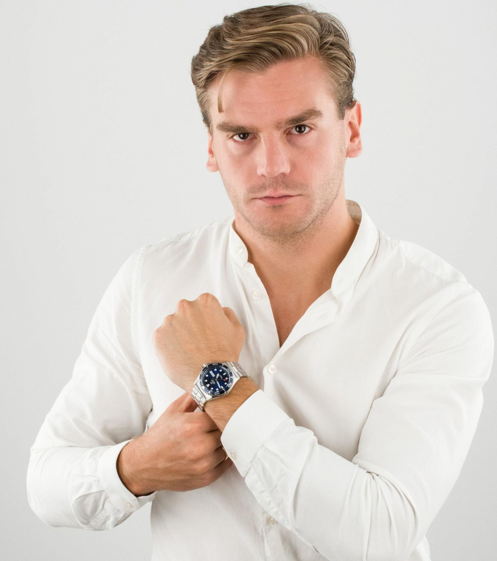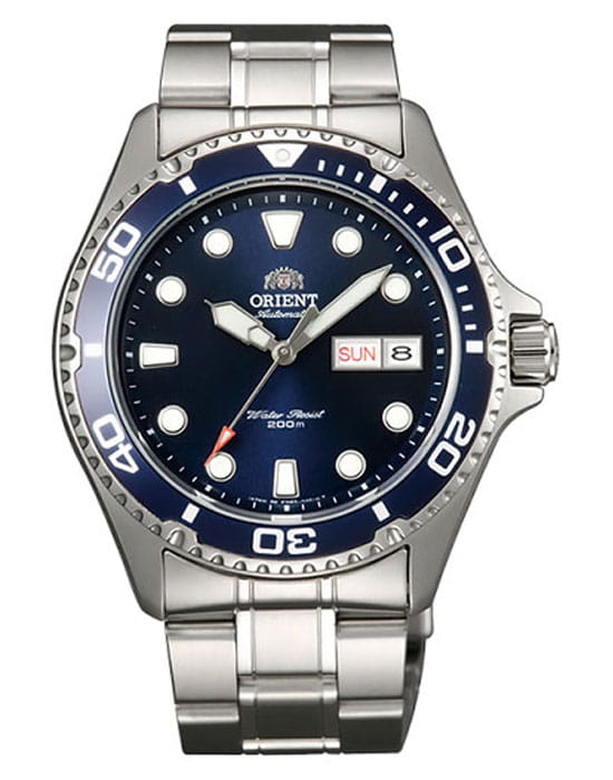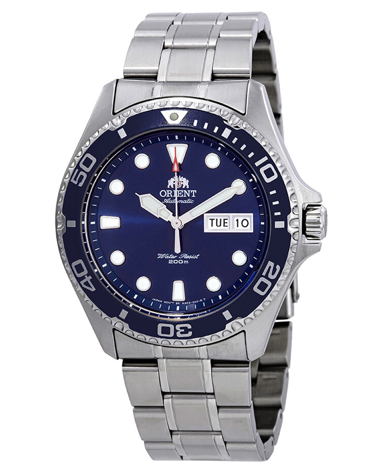 Orient Ray II AA02005D — это стильные и надежные часы для активного образа жизни. Корпус диаметром 41,5 мм выполнен из нержавеющей стали, что обеспечивает прочность и долговечность. Вращающийся однонаправленный безельБезельВнешний ободок, закрепляющий стекло. В спортивных часах так называется поворотное кольцо с делениями на циферблате, выполняет роль таймера – замеряет отрезки времени на шкале. Неподвижный безель – элемент декора. Однонаправленно вращающийся безель на дайверских часах позволяет фиксировать моменты погружения и выныривания на поверхность. с 120 щелчками позволяет точно отсчитывать время погружения. Глубокий синий циферблат оснащен крупными часовыми метками и стрелками с люминесцентным покрытиемЛюминесцентное покрытиеПозволяет считывать показания времени в темноте. Производители наносят на стрелки, часовые индексы, безель или поверхность циферблата светонакопительный состав, дающий холодное свечение., что гарантирует отличную читаемость в темноте. Окошко даты и дня недели расположено на отметке «3 часа» для удобства. Надежную защиту циферблата обеспечивает минеральное стеклоМинеральное стеклоМинеральное стекло представляет собой искусственно выращенный минерал кварца. Такое стекло отличается особой устойчивостью к повреждениям и царапинам. Уступает по некоторым качествам сапфировому стеклу.. Внутри установлен автоматический механизм Orient калибра F6922 с функцией ручного подзавода и стоп-секундой, обеспечивающий точность хода. Часы комплектуются стальным браслетом с раскладной застёжкой и предохранителем, что гарантирует надежную фиксацию на запястье. Водонепроницаемость до 200 метров делает модель идеальным выбором для плавания и дайвинга.