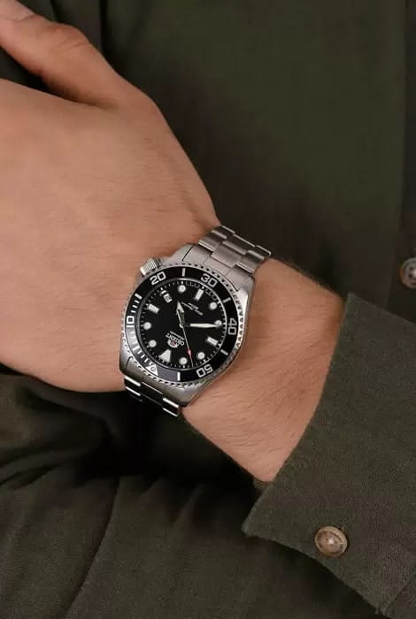 Мужские механические часы с автоподзаводом Orient Automatic RA-AC0K01B. Сапфировое стеклоСапфировое стеклоПрочный и надёжный материал из кристалла сапфира синтетического происхождения, характеризующийся особой твёрдостью и устойчивостью к царапинам и повреждениям. устойчивое к появлению царапин, обладающее высокой прозрачностью. Корпус из нержавеющей стали. Вращающийся безельБезельВнешний ободок, закрепляющий стекло. В спортивных часах так называется поворотное кольцо с делениями на циферблате, выполняет роль таймера – замеряет отрезки времени на шкале. Неподвижный безель – элемент декора. Однонаправленно вращающийся безель на дайверских часах позволяет фиксировать моменты погружения и выныривания на поверхность. из нержавеющей стали с PVDPVDУльтратонкое покрытие наносится в технике вакуумного напыления, сочетает в себе нитрид титана особой прочности со слоем золота или оксида хрома. Несёт в себе декоративную или защитную функцию. покрытием. Окошко даты в положении 4 часов. Стрелки и метки с люминесцентным покрытиемЛюминесцентное покрытиеПозволяет считывать показания времени в темноте. Производители наносят на стрелки, часовые индексы, безель или поверхность циферблата светонакопительный состав, дающий холодное свечение.. Класс водозащиты: 200 метров, позволит плавать, нырять и заниматься другими водными видами спорта. Стальной браслет на раскладной застёжкеРаскладная застёжкаТакой тип застёжки используется только на браслетах из металла. Она никогда не раскрывается полностью, происходит разделение на 2 и более частей. Раскладывающая застёжка снизит вероятность потери часов к минимуму..