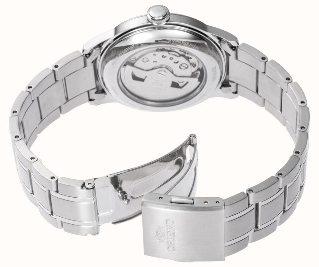 Часы Orient RA-AC0M10L из серии Bambino — это элегантное сочетание классического дизайна и современных технологий. Корпус диаметром 38,4 мм выполнен из нержавеющей стали, защищён минеральным стекломМинеральное стеклоМинеральное стекло представляет собой искусственно выращенный минерал кварца. Такое стекло отличается особой устойчивостью к повреждениям и царапинам. Уступает по некоторым качествам сапфировому стеклу. с выпуклой формой, что добавляет модели винтажный шарм. Голубой циферблат подчёркивает утончённый стиль часов, а серебристые стрелки и часовые метки создают изысканный контраст. На отметке «3 часа» расположено окошко даты, добавляющее практичности. Автоматический механизм Orient Calibre F6724 с функцией ручного завода и остановки секундной стрелки обеспечивает высокую точность и удобство использования. Запас хода до 40 часов делает часы надёжным выбором для повседневного ношения. Браслет из нержавеющей стали с раскладной застёжкой обеспечивает комфортное ношение и надёжную фиксацию. Водонепроницаемость до 30 метров защищает часы от случайных брызг. Orient RA-AC0M10L — это выбор для тех, кто ценит стиль, качество и традиции часового искусства.