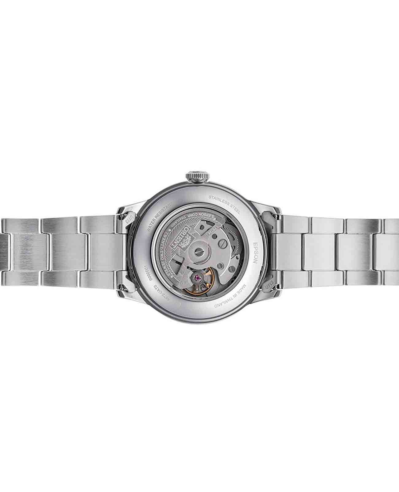 Браслет часов также выполнен из нержавеющей стали и оснащен удобной раскладной застежкойРаскладная застёжкаТакой тип застёжки используется только на браслетах из металла. Она никогда не раскрывается полностью, происходит разделение на 2 и более частей. Раскладывающая застёжка снизит вероятность потери часов к минимуму., обеспечивающей надежную фиксацию и комфорт при ношении. Эта модель станет прекрасным выбором для тех, кто предпочитает сочетать классический дизайн с современными технологиями и высоким качеством исполнения. Orient Automatic RA-AC0M11Y3 (RA-AC0M11Y30B) отлично подходят как для ежедневного использования, так и для более формальных ситуаций.