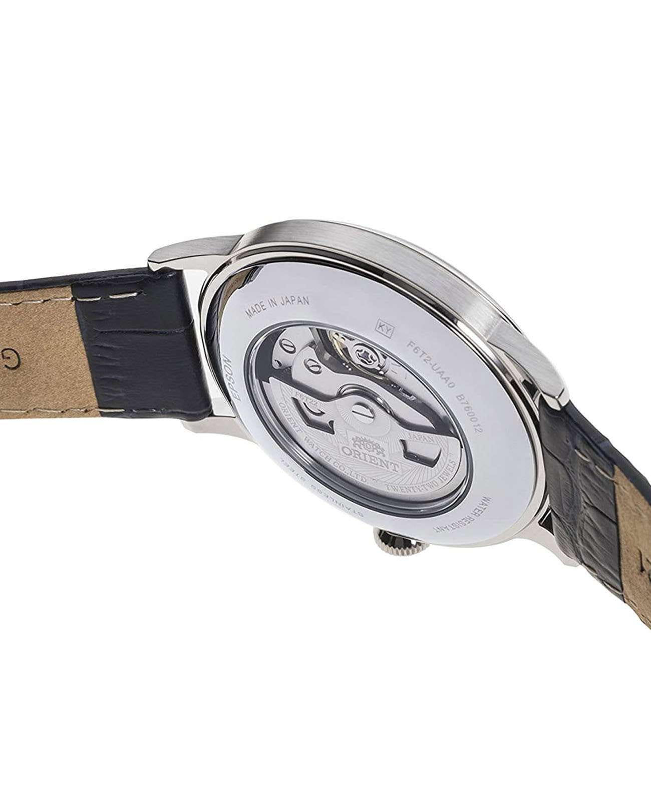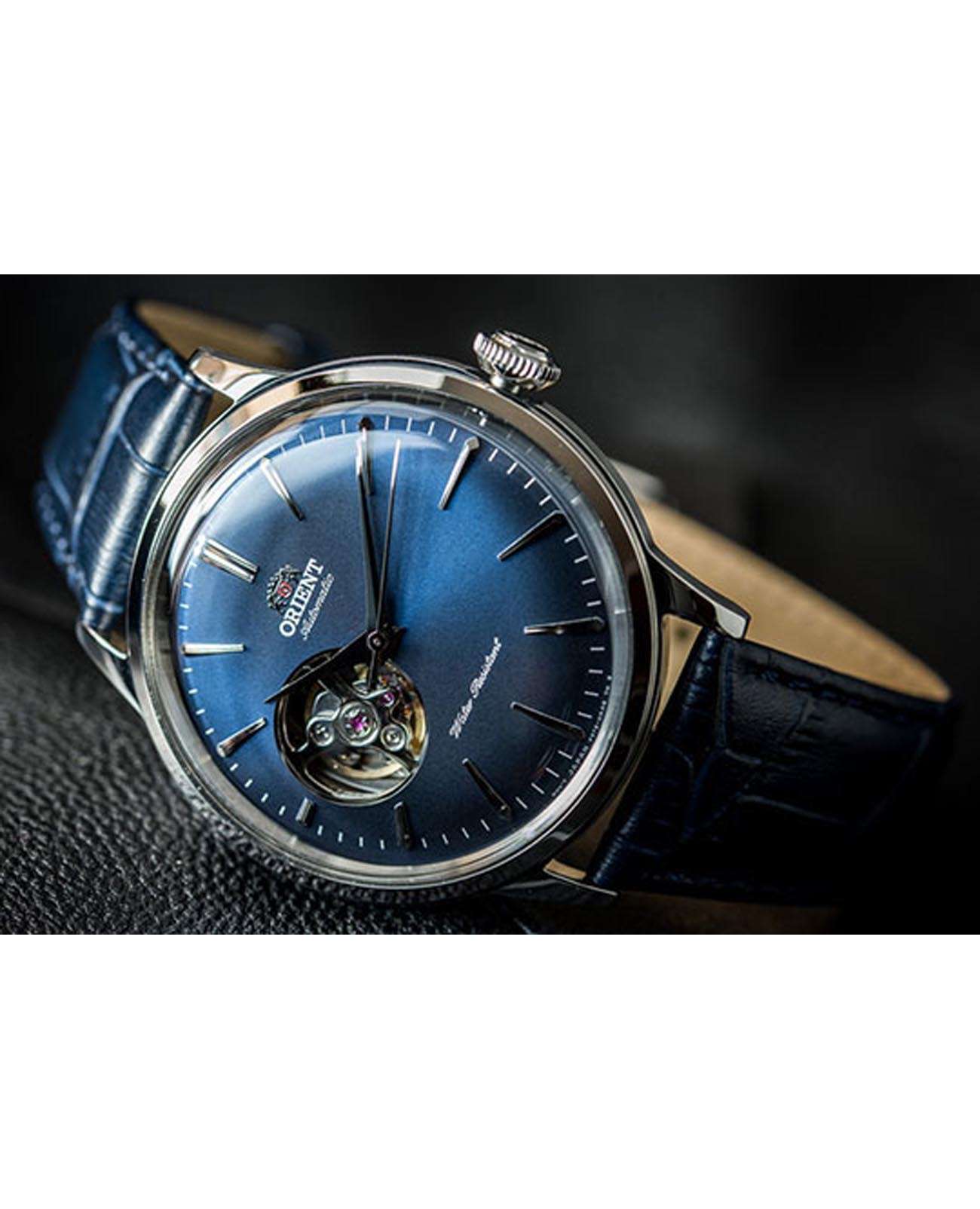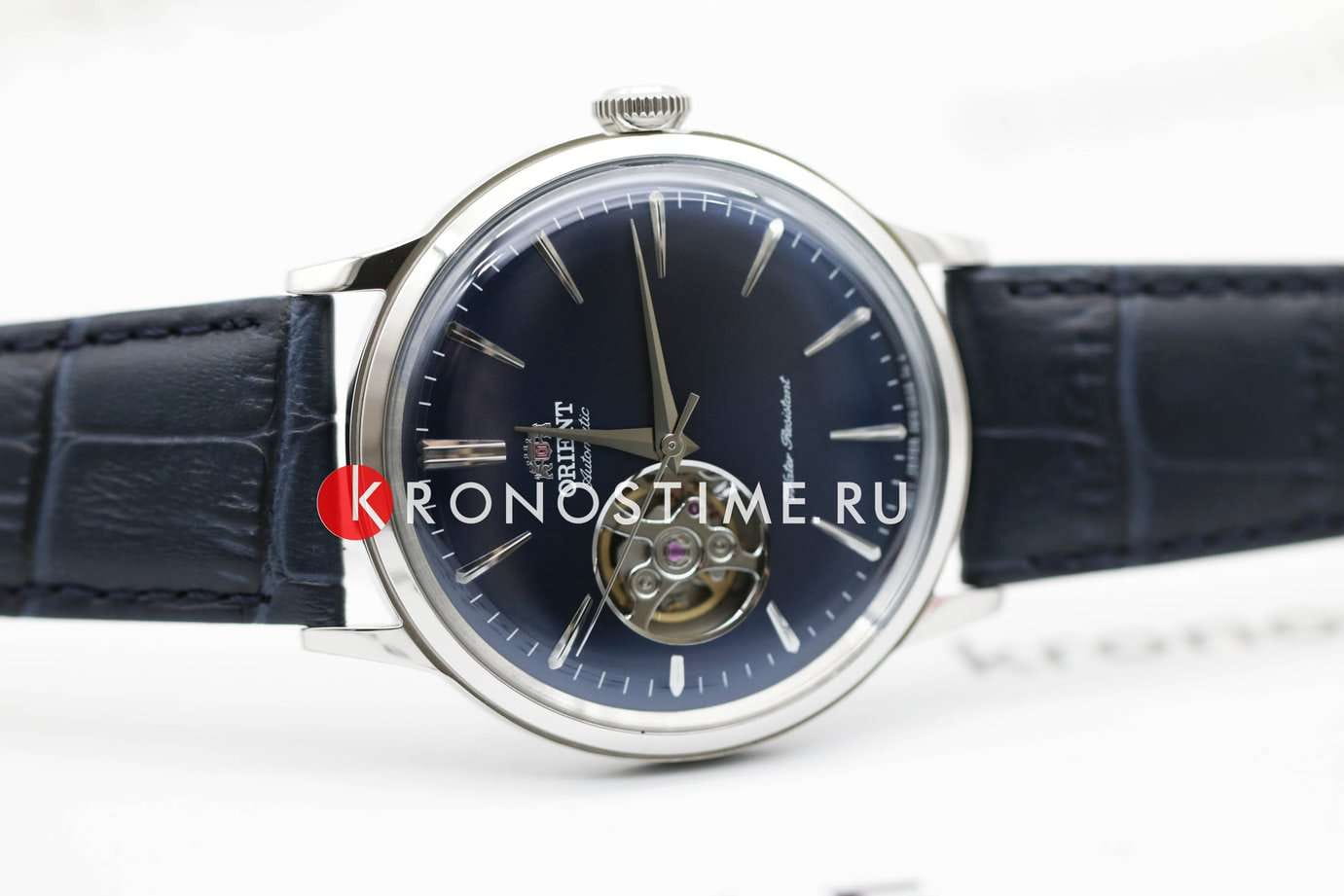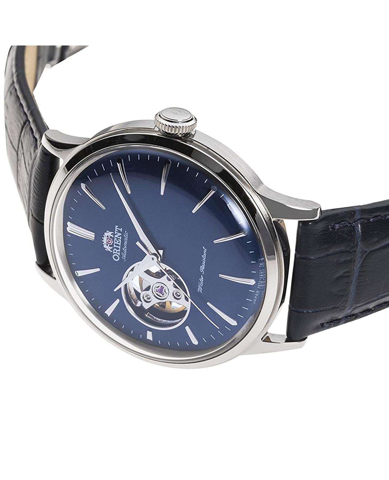 Orient RA-AG0005L — элегантные механические часы с изысканным дизайном и надёжной японской механикой. Корпус диаметром 40,5 мм выполнен из нержавеющей стали, что придаёт модели прочность и долговечность. Синий циферблат украшен открытым балансом (Open Heart), позволяющим наблюдать за работой механизма. Позолоченные стрелки и часовые метки придают часам утончённый стиль. Защиту циферблата обеспечивает минеральное стеклоМинеральное стеклоМинеральное стекло представляет собой искусственно выращенный минерал кварца. Такое стекло отличается особой устойчивостью к повреждениям и царапинам. Уступает по некоторым качествам сапфировому стеклу., устойчивое к царапинам. Внутри установлен автоматический механизм Orient калибра F6T22 с 22 камнями, функцией стоп-секунды и возможностью ручного завода. Запас хода составляет более 40 часов. Часы укомплектованы синим кожаным ремешком с текстурой под аллигатора, а классическая застёжка-пряжка гарантирует удобную фиксацию на запястье. Водонепроницаемость 30 метров защищает модель от случайных брызг и дождя, делая её отличным выбором для повседневного ношения.