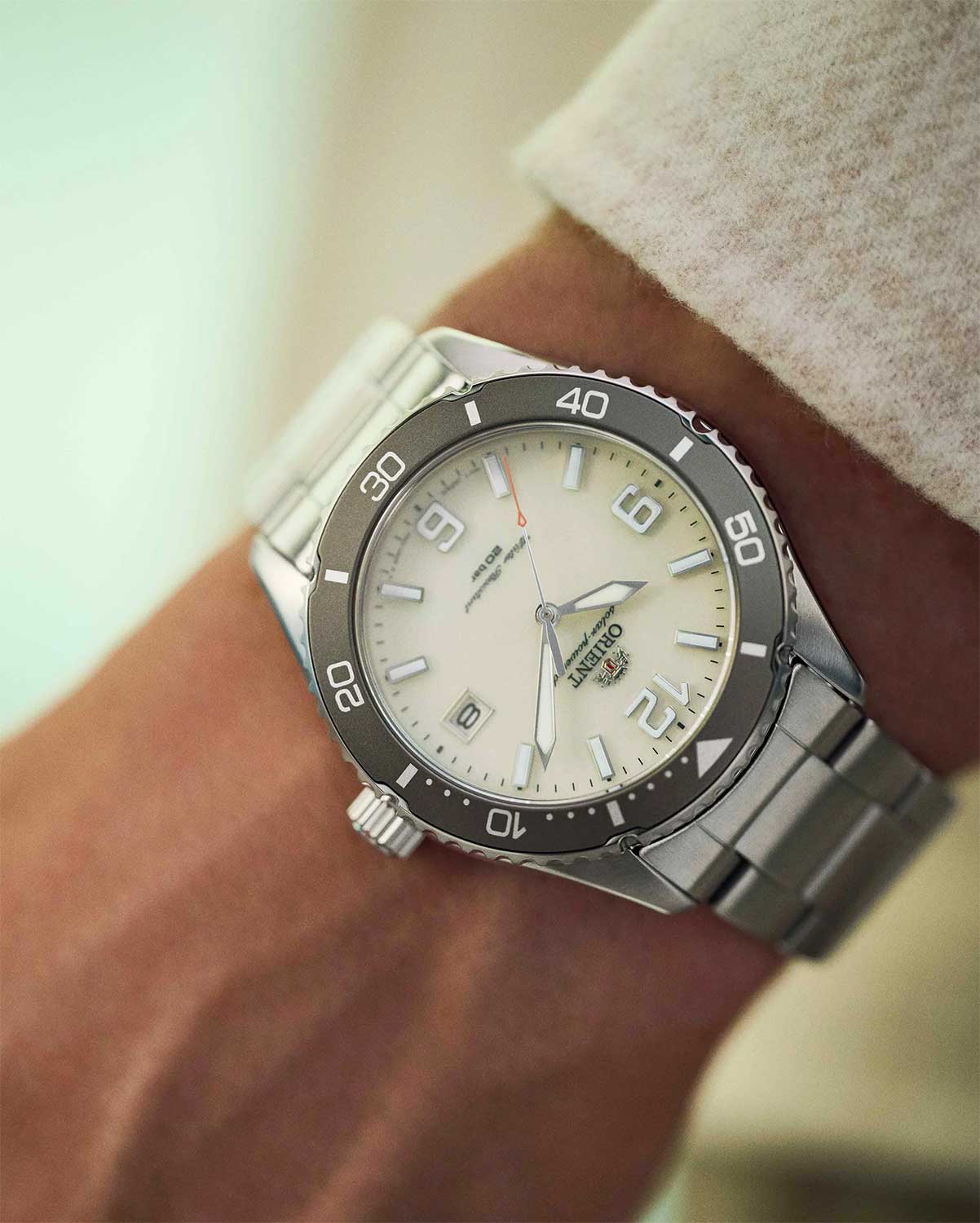 Мужские элегантные кварцевые часы Orient Mako Kamasu RA-WJ0003S выполнены в классическом спортивном стиле и оснащены солнечной батареей. Циферблат оформлен с использованием технологии Sunray (солнечные лучи), обеспечивая эффектный визуальный блеск. Метки в виде штрихов и арабских цифр. Эта изысканная модель имеет люминесцентное покрытиеЛюминесцентное покрытиеПозволяет считывать показания времени в темноте. Производители наносят на стрелки, часовые индексы, безель или поверхность циферблата светонакопительный состав, дающий холодное свечение. на стрелках и метках для отличной читаемости в темноте. Окошко даты расположено в положении 3 часов. Корпус изготовлен из стали. Часы оснащены вращающимся в одном направлении безелемБезельВнешний ободок, закрепляющий стекло. В спортивных часах так называется поворотное кольцо с делениями на циферблате, выполняет роль таймера – замеряет отрезки времени на шкале. Неподвижный безель – элемент декора. Однонаправленно вращающийся безель на дайверских часах позволяет фиксировать моменты погружения и выныривания на поверхность. с алюминиевой вставкой, который удобен при подсчёте времени. Защиту циферблата обеспечивает сапфировое стеклоСапфировое стеклоПрочный и надёжный материал из кристалла сапфира синтетического происхождения, характеризующийся особой твёрдостью и устойчивостью к царапинам и повреждениям., устойчивое к царапинам и повреждениям. Водозащита 200 WR позволяет использовать часы даже при активных водных занятиях. Часы установлены на стальной браслет с раскладной застёжкойРаскладная застёжкаТакой тип застёжки используется только на браслетах из металла. Она никогда не раскрывается полностью, происходит разделение на 2 и более частей. Раскладывающая застёжка снизит вероятность потери часов к минимуму., обеспечивающей надёжную фиксацию на руке. Это сочетание технологичности, прочности и эргономики для уверенных в себе людей.