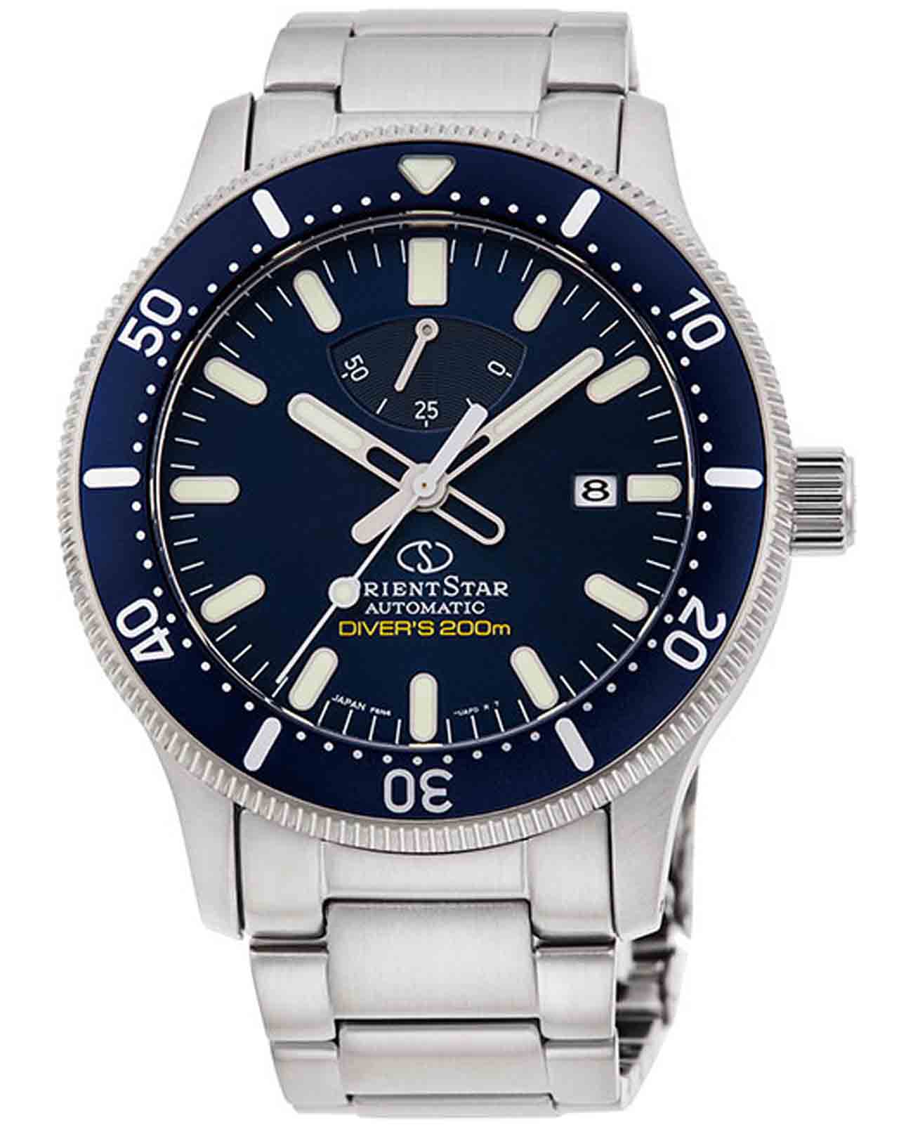 Мужские японские механические часы Orient Star модели RE-AU0302L оборудованы сапфировым стекломСапфировое стеклоПрочный и надёжный материал из кристалла сапфира синтетического происхождения, характеризующийся особой твёрдостью и устойчивостью к царапинам и повреждениям., обеспечивающим надежную защиту от механических повреждений и высокую устойчивость к появлению царапин. Водонепроницаемость этих часов составляет 200 метров, что делает их идеальным выбором для плавания, занятий дайвингом и прочих водных видов активности. Корпус часов выполнен из прочной нержавеющей стали, отличающейся высокой стойкостью к коррозии и долговечностью. БезельБезельВнешний ободок, закрепляющий стекло. В спортивных часах так называется поворотное кольцо с делениями на циферблате, выполняет роль таймера – замеряет отрезки времени на шкале. Неподвижный безель – элемент декора. Однонаправленно вращающийся безель на дайверских часах позволяет фиксировать моменты погружения и выныривания на поверхность. с IP-покрытиемIP-покрытиеМетод ионного напыления. Демонстрирует повышенную устойчивость к истиранию, окислению и химическим веществам. Под воздействием высокого давления и температуры около 1500°C молекулы металла надёжно соединяются с частицами корпуса часов. подчеркивает изысканный дизайн и дополнительно защищает часы от воздействия окружающей среды. На циферблате в позиции «3 часа» располагается окно даты, удобное для отслеживания текущей даты. Завинчивающаяся заводная головка имеет рифленую структуру для удобного управления. Часовые стрелки обработаны люминесцентным покрытиемЛюминесцентное покрытиеПозволяет считывать показания времени в темноте. Производители наносят на стрелки, часовые индексы, безель или поверхность циферблата светонакопительный состав, дающий холодное свечение., что гарантирует отличную читаемость показаний даже в темноте. Механизм часов оснащен 22 камнями и работает с частотой 21 600 полуколебаний в час, обеспечивая высокую точность хода. Также имеется ретроградный индикатор запаса хода, который показывает запас энергии до 50 часов. Прочная прозрачная задняя крышка с винтовой фиксацией позволяет любоваться внутренним механизмом часов. Браслет из нержавеющей стали оснащен раскладной застежкойРаскладная застёжкаТакой тип застёжки используется только на браслетах из металла. Она никогда не раскрывается полностью, происходит разделение на 2 и более частей. Раскладывающая застёжка снизит вероятность потери часов к минимуму., гарантируя надежное крепление и удобство ношения.