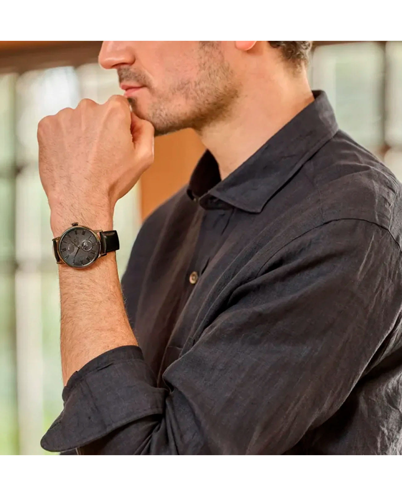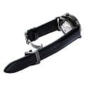 Ремешок часов выполнен из кожи и крепится  на раскладной застёжкеРаскладная застёжкаТакой тип застёжки используется только на браслетах из металла. Она никогда не раскрывается полностью, происходит разделение на 2 и более частей. Раскладывающая застёжка снизит вероятность потери часов к минимуму., что обеспечивает удобство при ношении и возможность регулировки размера.