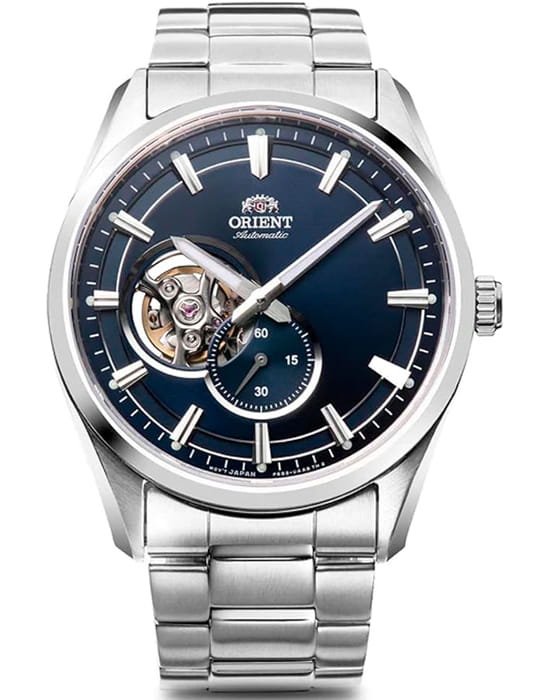 Часы Orient RA-AR0002L из коллекции Contemporary — это сочетание элегантности и современных технологий. Корпус диаметром 40,8 мм выполнен из нержавеющей стали, защищён Сапфировым стекломСапфировое стеклоПрочный и надёжный материал из кристалла сапфира синтетического происхождения, характеризующийся особой твёрдостью и устойчивостью к царапинам и повреждениям., что обеспечивает долговечность и стойкость к царапинам. Синий циферблат с люминесцентными стрелками и меткамиЛюминесцентное покрытиеПозволяет считывать показания времени в темноте. Производители наносят на стрелки, часовые индексы, безель или поверхность циферблата светонакопительный состав, дающий холодное свечение. гарантирует отличную читаемость в любых условиях. Полу-скелетонный дизайн с окошком на отметке «9 часов» добавляет изысканности, позволяя наблюдать за работой механизма. Автоматический механизм Orient Calibre F6T22 поддерживает ручной завод и функцию остановки секундной стрелки, обеспечивая высокую точность и удобство настройки. Запас хода до 40 часов делает часы практичным аксессуаром для повседневного использования. Браслет из нержавеющей стали с раскладной застёжкой обеспечивает комфортное ношение и надёжную фиксацию. Водонепроницаемость до 50 метров защищает часы от случайных брызг, делая их подходящими для ежедневной носки. Orient RA-AR0002L — это выбор для тех, кто ценит стиль, функциональность и надёжность.