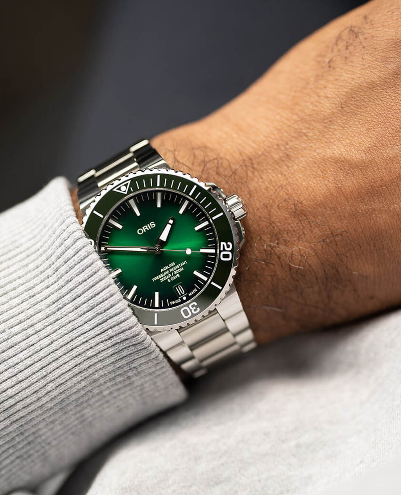 Корпус выполнен из прочной нержавеющей стали, что обеспечивает долговечность и устойчивость к внешним воздействиям. Поворотный безель помогает точно отслеживать время погружения, делая эти часы незаменимыми для дайверов. Циферблат с метками в виде штрихов защищен сапфировым стекломСапфировое стеклоПрочный и надёжный материал из кристалла сапфира синтетического происхождения, характеризующийся особой твёрдостью и устойчивостью к царапинам и повреждениям., которое не царапается при механическом воздействии и является одним из лучших материалов для наручных часов.