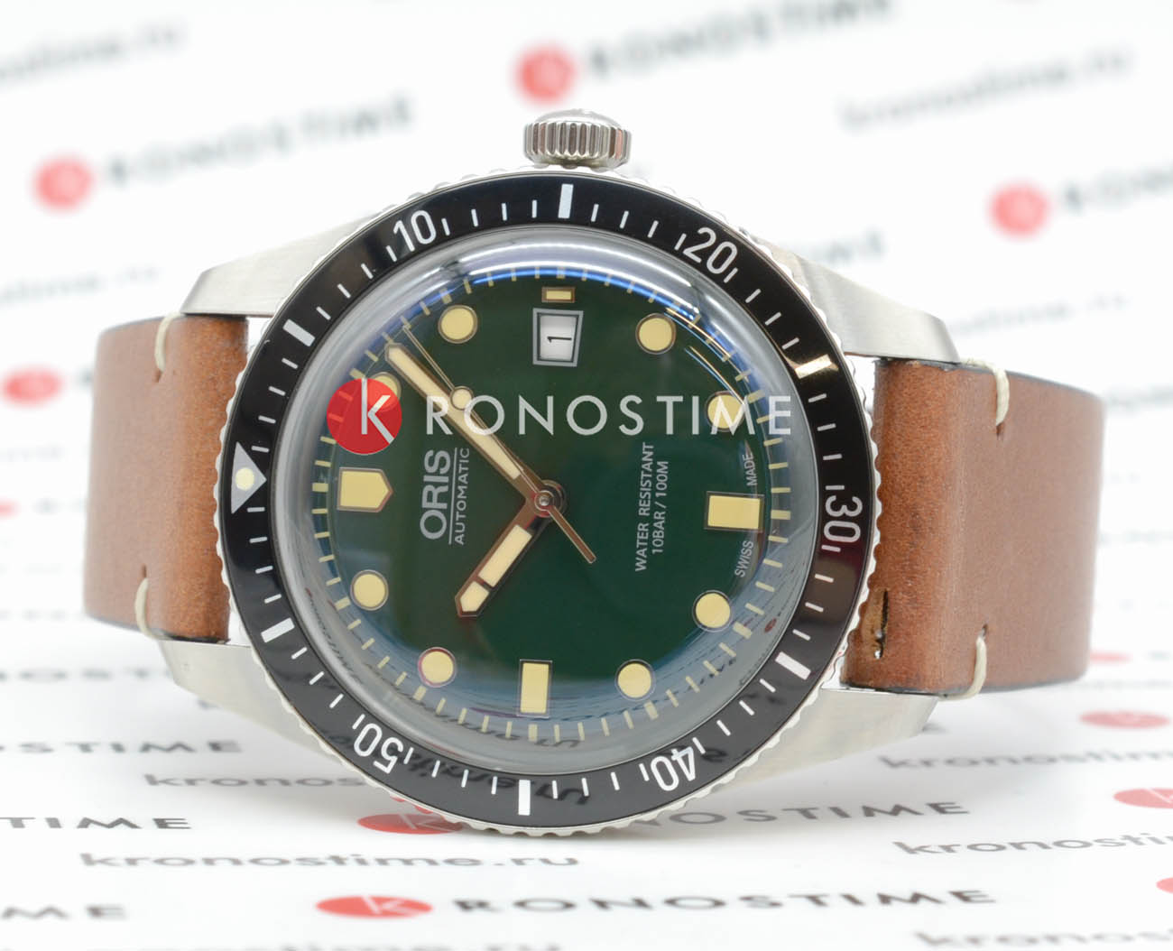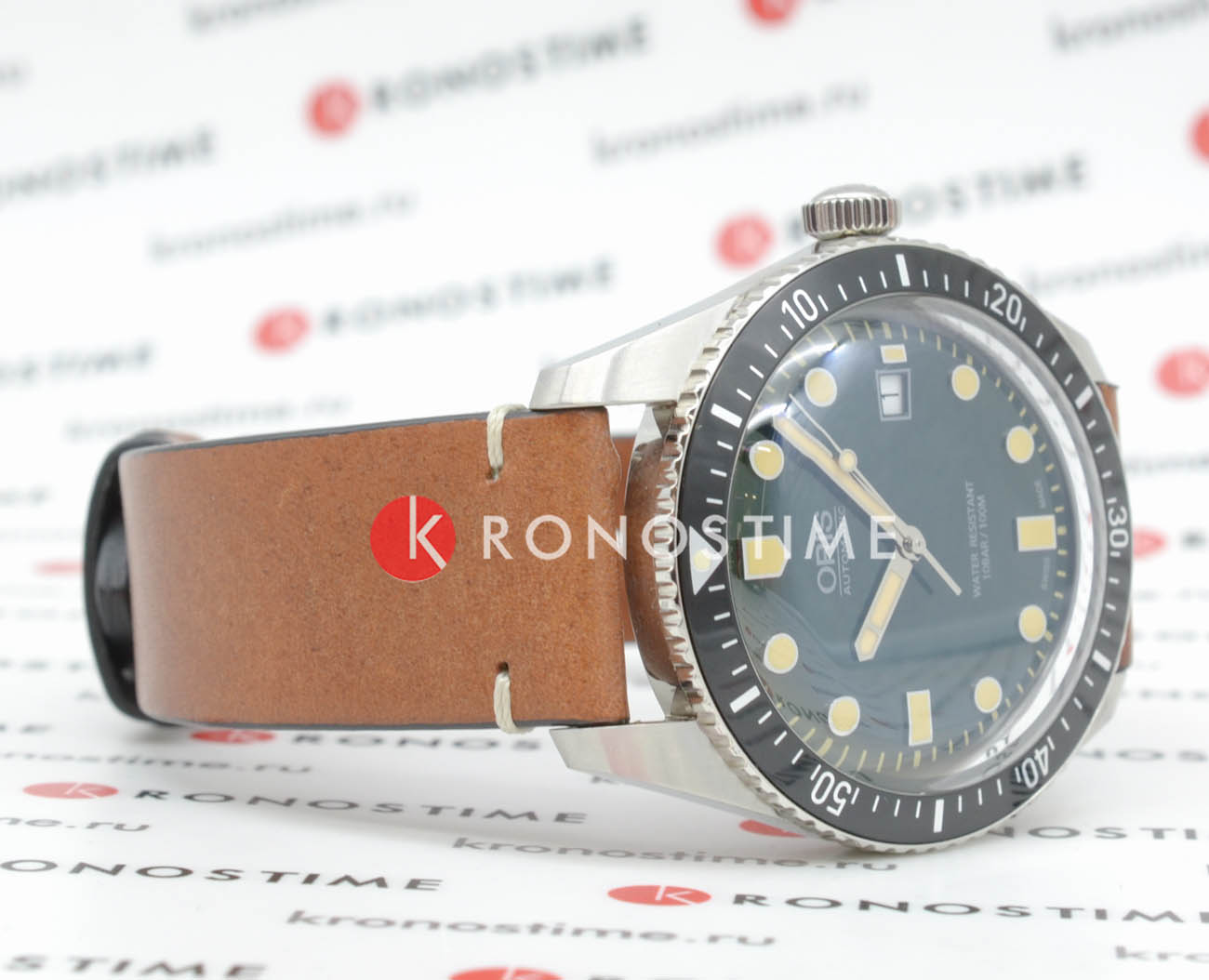 Швейцарские мужские часы ORIS Divers Sixty-Five. Корпус выполнен из высококачественной нержавеющей стали, что обеспечивает прочность и долговечность. Циферблат с традиционными стрелками и метками в виде штрихов защищен устойчивым к царапинам сапфировым стеклом с антибликовым покрытиемСапфировое стеклоПрочный и надёжный материал из кристалла сапфира синтетического происхождения, характеризующийся особой твёрдостью и устойчивостью к царапинам и повреждениям., обеспечивающим отличную читаемость показаний в любых условиях. Механизм Oris 733 — это автоматический механизм с автоподзаводом, который гарантирует точность хода и надежность работы. Функционал включает центральные часовые, минутные и секундные стрелки, окошко даты с быстрым переводом, а также функцию stop-second для точной настройки времени. Запас хода механизма составляет 41 час. Стрелки и метки имеют люминесцентное покрытиеЛюминесцентное покрытиеПозволяет считывать показания времени в темноте. Производители наносят на стрелки, часовые индексы, безель или поверхность циферблата светонакопительный состав, дающий холодное свечение., которое позволяет легко определять время даже в темноте. Поворотный безель из нержавеющей стали с PVD-покрытиемPVDУльтратонкое покрытие наносится в технике вакуумного напыления, сочетает в себе нитрид титана особой прочности со слоем золота или оксида хрома. Несёт в себе декоративную или защитную функцию. помогает точно отслеживать промежутки времени. Водозащита до 100 метров (WR100) делает эти часы идеальными для плавания и других водных видов спорта. Кожаный ремешок на стандартной застёжке.