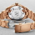Многокомпонентный бронзовый корпус, бронзовый вращающийся безельБезельВнешний ободок, закрепляющий стекло. В спортивных часах так называется поворотное кольцо с делениями на циферблате, выполняет роль таймера – замеряет отрезки времени на шкале. Неподвижный безель – элемент декора. Однонаправленно вращающийся безель на дайверских часах позволяет фиксировать моменты погружения и выныривания на поверхность. с минутной шкалой. Сапфировое стеклоСапфировое стеклоПрочный и надёжный материал из кристалла сапфира синтетического происхождения, характеризующийся особой твёрдостью и устойчивостью к царапинам и повреждениям., выпуклое с обеих сторон, внутреннее антибликовое покрытие. Прозрачная задняя крышка из сапфирового стеклаСапфировое стеклоПрочный и надёжный материал из кристалла сапфира синтетического происхождения, характеризующийся особой твёрдостью и устойчивостью к царапинам и повреждениям.. Стрелки и метки с люминесцентным покрытиемЛюминесцентное покрытиеПозволяет считывать показания времени в темноте. Производители наносят на стрелки, часовые индексы, безель или поверхность циферблата светонакопительный состав, дающий холодное свечение.. Завинчивающаяся заводная головка.