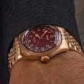Big Crown Pointer Date, ставшая иконой Oris в 1938 году, теперь украшена циферблатом бордо. Этот нестареющий дизайн включает в себя массивный бронзовый корпус, безель и крупную заводную головку, а также красную стрелку указателя даты с полумесяцем. Фирменный образец швейцарского часового искусства.