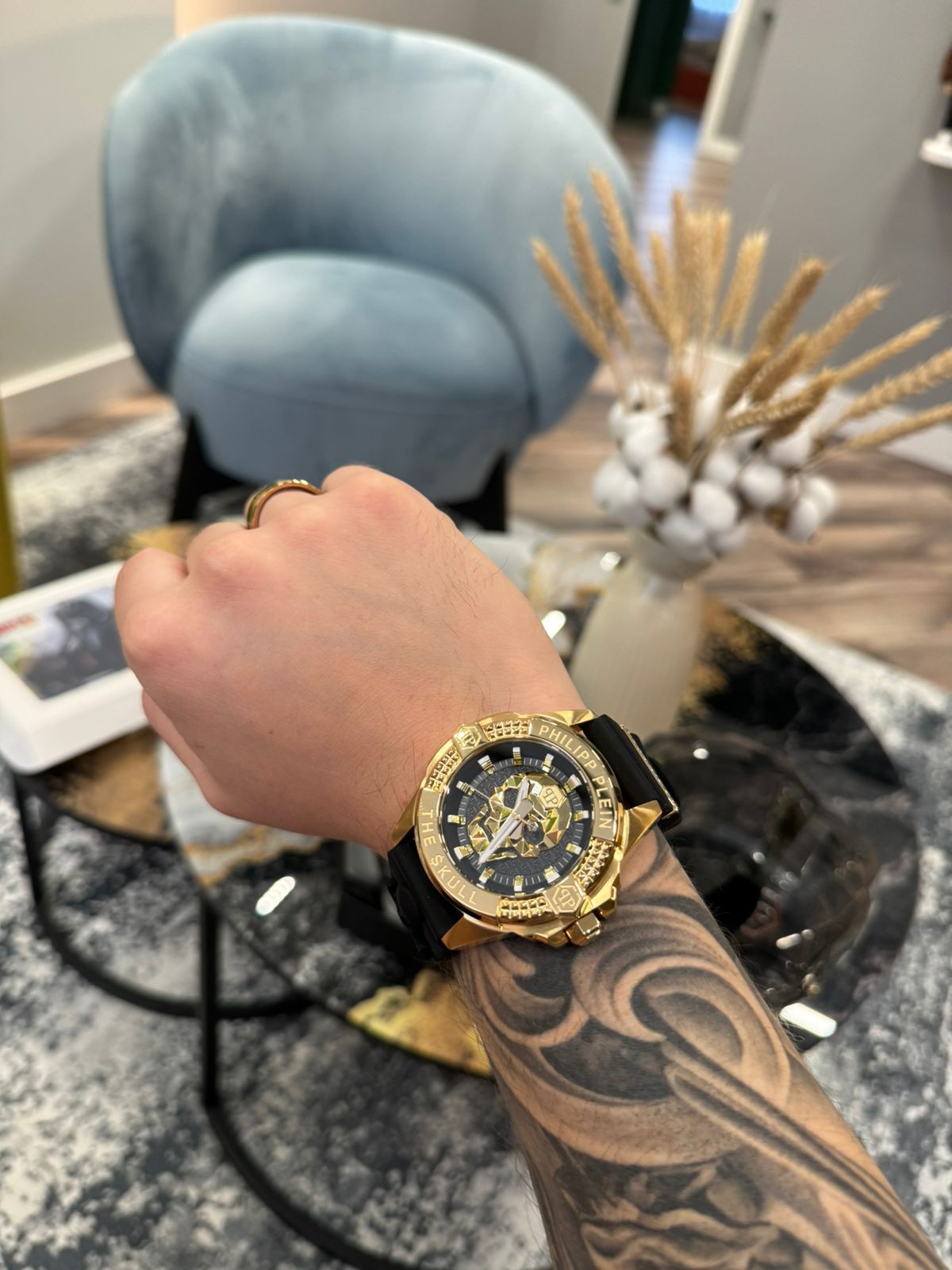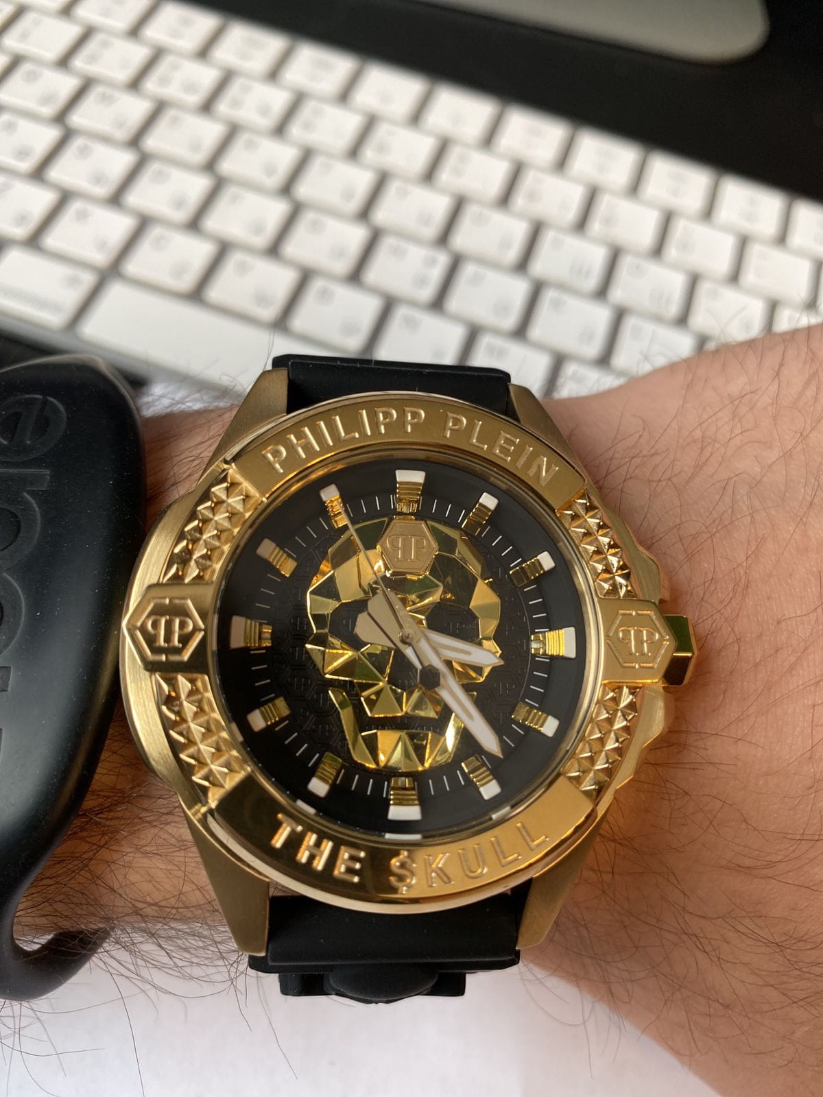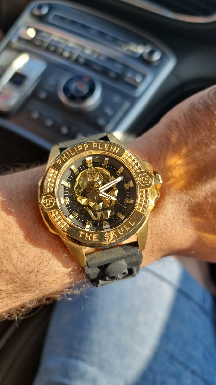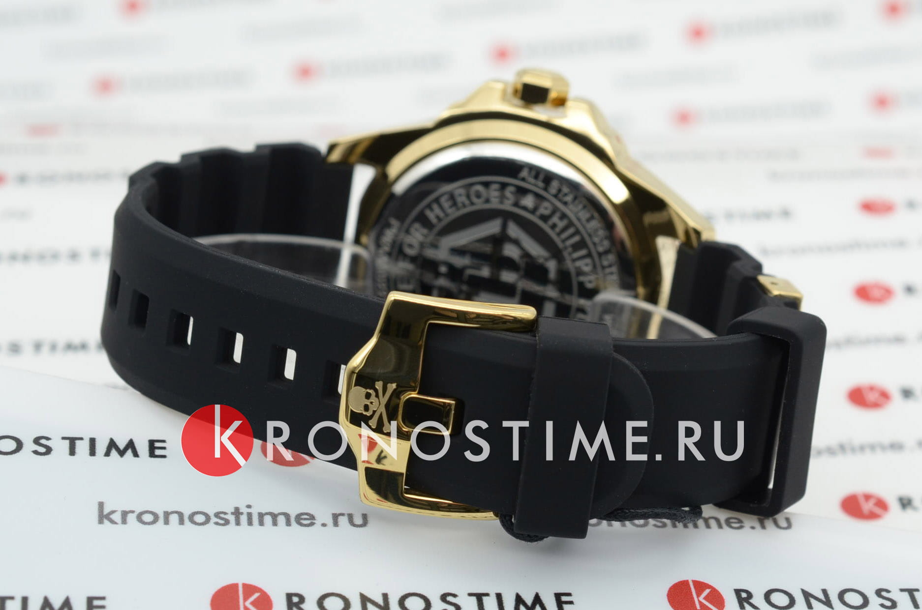 Яркие мужские часы с минеральным стекломМинеральное стеклоМинеральное стекло представляет собой искусственно выращенный минерал кварца. Такое стекло отличается особой устойчивостью к повреждениям и царапинам. Уступает по некоторым качествам сапфировому стеклу. Philipp Plein The Skull PWAAA0221, кварцевый механизм с высокой точностью. Класс водозащиты: 50 метров, позволит защитить корпус от случайных брызг или капель дождя. Корпус часов изготовлен из стали с IP-покрытиемIP-покрытиеМетод ионного напыления. Демонстрирует повышенную устойчивость к истиранию, окислению и химическим веществам. Под воздействием высокого давления и температуры около 1500°C молекулы металла надёжно соединяются с частицами корпуса часов.