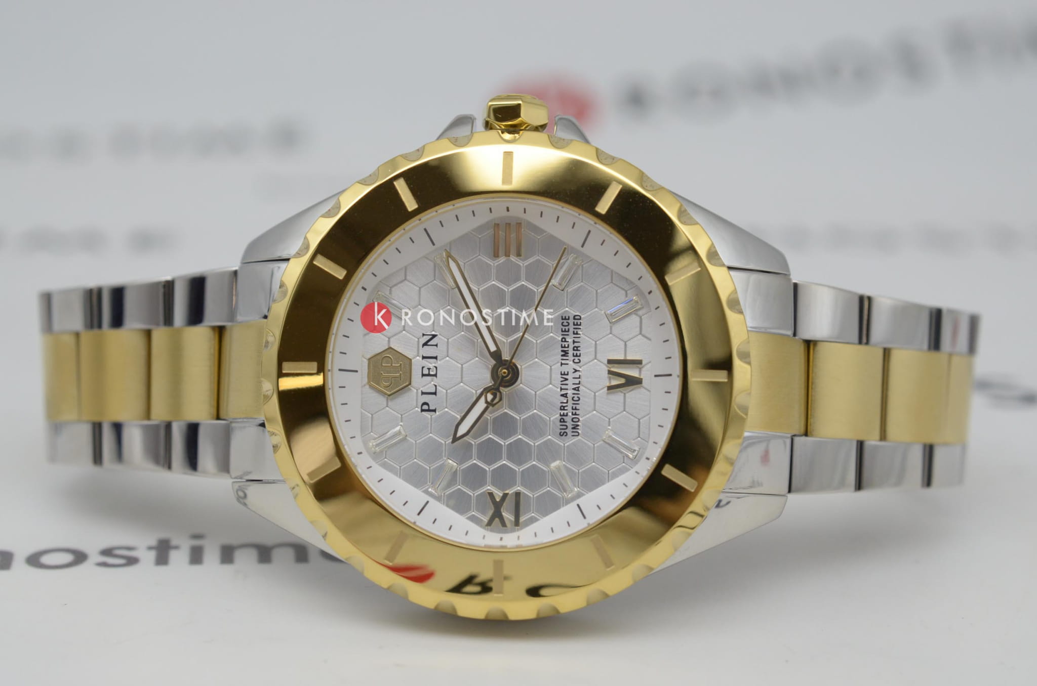 Женские часы Philipp Plein PWPOA0424 с надежным кварцевым механизмом. Корпус часов изготовлен из стали. Минеральное стеклоМинеральное стеклоМинеральное стекло представляет собой искусственно выращенный минерал кварца. Такое стекло отличается особой устойчивостью к повреждениям и царапинам. Уступает по некоторым качествам сапфировому стеклу. устойчивое к мелким механическим повреждениям. Влагозащита: 50 метров, позволит плавать, нырять и заниматься другими водными видами спорта. Стрелки и метки с люминесцентным покрытиемЛюминесцентное покрытиеПозволяет считывать показания времени в темноте. Производители наносят на стрелки, часовые индексы, безель или поверхность циферблата светонакопительный состав, дающий холодное свечение.. Стальной браслет с IP-покрытиемIP-покрытиеМетод ионного напыления. Демонстрирует повышенную устойчивость к истиранию, окислению и химическим веществам. Под воздействием высокого давления и температуры около 1500°C молекулы металла надёжно соединяются с частицами корпуса часов. на застёжке-бабочке с кнопкамиЗастёжка "бабочка"Такой вид застёжки дополняется предохранителями, помогающими избежать случайного раскрытия браслета. Обладают изящным исполнением. .