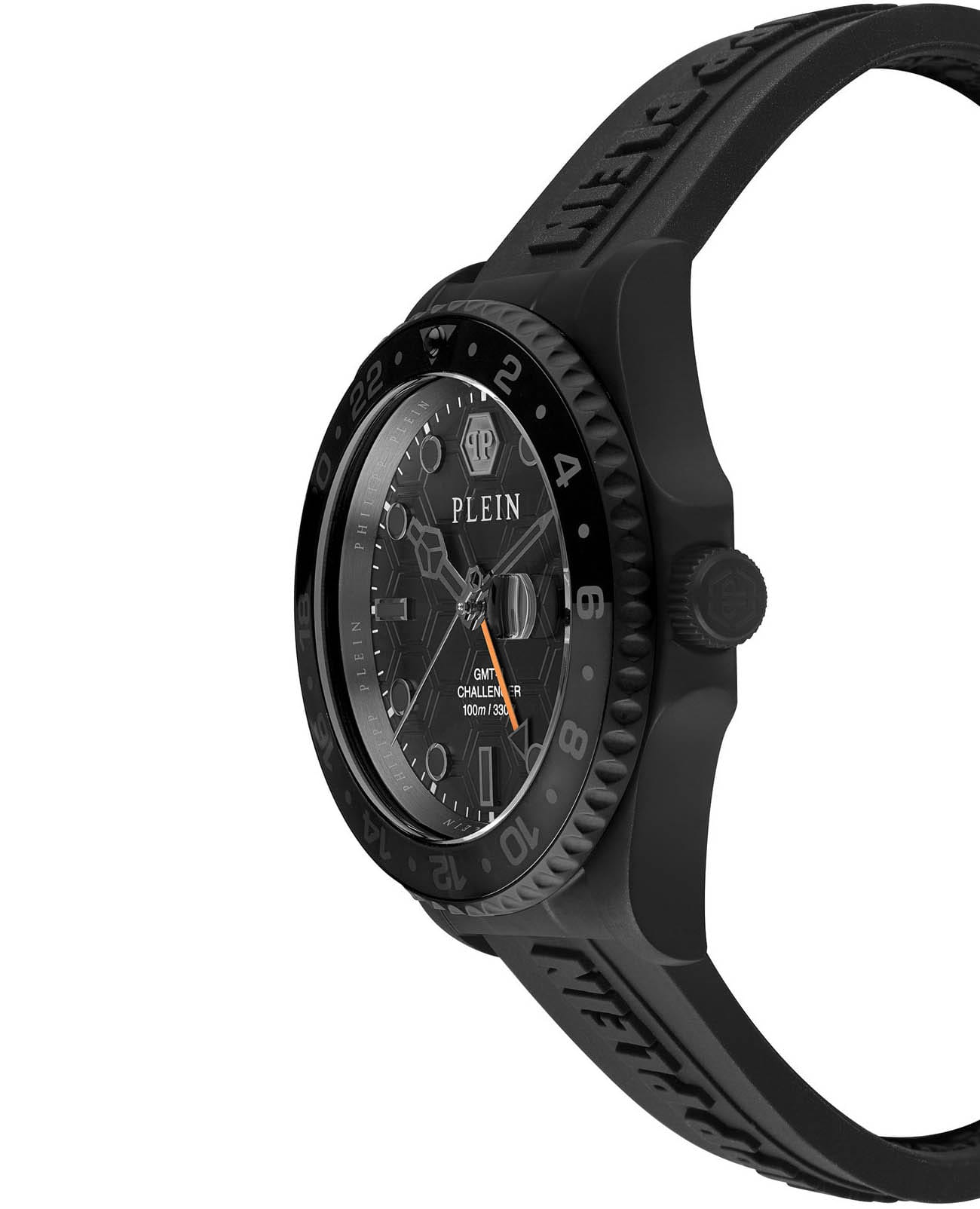 Мужские часы Philipp Plein GMT-I Challenger PWYBA1023 с надежным кварцевым механизмом. Корпус часов изготовлен из нержавеющей стали с IP-покрытиемIP-покрытиеМетод ионного напыления. Демонстрирует повышенную устойчивость к истиранию, окислению и химическим веществам. Под воздействием высокого давления и температуры около 1500°C молекулы металла надёжно соединяются с частицами корпуса часов.. Минеральное стеклоМинеральное стеклоМинеральное стекло представляет собой искусственно выращенный минерал кварца. Такое стекло отличается особой устойчивостью к повреждениям и царапинам. Уступает по некоторым качествам сапфировому стеклу. устойчивое к мелким механическим повреждениям. Влагозащита: 100 метров, позволит плавать, нырять и заниматься другими водными видами спорта. Стрелки и метки с люминесцентным покрытиемЛюминесцентное покрытиеПозволяет считывать показания времени в темноте. Производители наносят на стрелки, часовые индексы, безель или поверхность циферблата светонакопительный состав, дающий холодное свечение.. Окошко даты находится в положении 3 часа. Вращающийся безельБезельВнешний ободок, закрепляющий стекло. В спортивных часах так называется поворотное кольцо с делениями на циферблате, выполняет роль таймера – замеряет отрезки времени на шкале. Неподвижный безель – элемент декора. Однонаправленно вращающийся безель на дайверских часах позволяет фиксировать моменты погружения и выныривания на поверхность. с PVD-покрытиемPVDУльтратонкое покрытие наносится в технике вакуумного напыления, сочетает в себе нитрид титана особой прочности со слоем золота или оксида хрома. Несёт в себе декоративную или защитную функцию..
