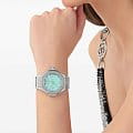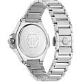 Philipp Plein Plein Lady Royal PWBDA0624 — это стильные женские часы, сочетающие элегантный дизайн и функциональность. Корпус диаметром 39 мм выполнен из нержавеющей стали серебристого цвета, обеспечивающей долговечность и современный внешний вид. Минеральное стеклоМинеральное стеклоМинеральное стекло представляет собой искусственно выращенный минерал кварца. Такое стекло отличается особой устойчивостью к повреждениям и царапинам. Уступает по некоторым качествам сапфировому стеклу. защищает циферблат от царапин, сохраняя его безупречное состояние. Синий циферблат с шестиугольной текстурой подчёркивает уникальный стиль бренда. Часы оснащены кварцевым механизмом, который обеспечивает точность хода. Водозащита до 5 ATM (50 метров) делает их идеальными для повседневного использования. Браслет из нержавеющей стали серебристого цвета обеспечивает комфортное прилегание к запястью на застёжке-бабочке с кнопкамиЗастёжка "бабочка"Такой вид застёжки дополняется предохранителями, помогающими избежать случайного раскрытия браслета. Обладают изящным исполнением. обеспечивает надёжную фиксацию и удобство ношения. Ширина браслета 20 мм идеально сочетается с размером корпуса, завершая утончённый и современный образ.