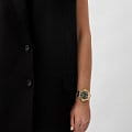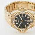 Philipp Plein Plein Lady Royal PWBDA0824 — это стильные женские часы, сочетающие современный дизайн и функциональность. Корпус диаметром 39 мм выполнен из нержавеющей стали с золотистым PVD-покрытиемPVDУльтратонкое покрытие наносится в технике вакуумного напыления, сочетает в себе нитрид титана особой прочности со слоем золота или оксида хрома. Несёт в себе декоративную или защитную функцию., что придаёт часам элегантный и роскошный вид. Минеральное стеклоМинеральное стеклоМинеральное стекло представляет собой искусственно выращенный минерал кварца. Такое стекло отличается особой устойчивостью к повреждениям и царапинам. Уступает по некоторым качествам сапфировому стеклу. защищает циферблат от царапин, сохраняя его внешний вид. Циферблат инкрустирован кристаллами. Чёрный циферблат с шестиугольной текстурой подчёркивает уникальный стиль бренда. Часовые метки в виде штрихов и классические стрелки обеспечивают удобное считывание времени. Часы оснащены кварцевым механизмом, который гарантирует точность хода. Водозащита до 5 ATM (50 метров) делает их идеальными для повседневного использования. Браслет из нержавеющей стали с золотистым PVD-покрытиемPVDУльтратонкое покрытие наносится в технике вакуумного напыления, сочетает в себе нитрид титана особой прочности со слоем золота или оксида хрома. Несёт в себе декоративную или защитную функцию. гармонично дополняет корпус на застёжке-бабочке с кнопкамиЗастёжка "бабочка"Такой вид застёжки дополняется предохранителями, помогающими избежать случайного раскрытия браслета. Обладают изящным исполнением. обеспечивает удобство и надёжность при ношении. Ширина браслета 16 мм завершает утончённый образ.