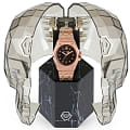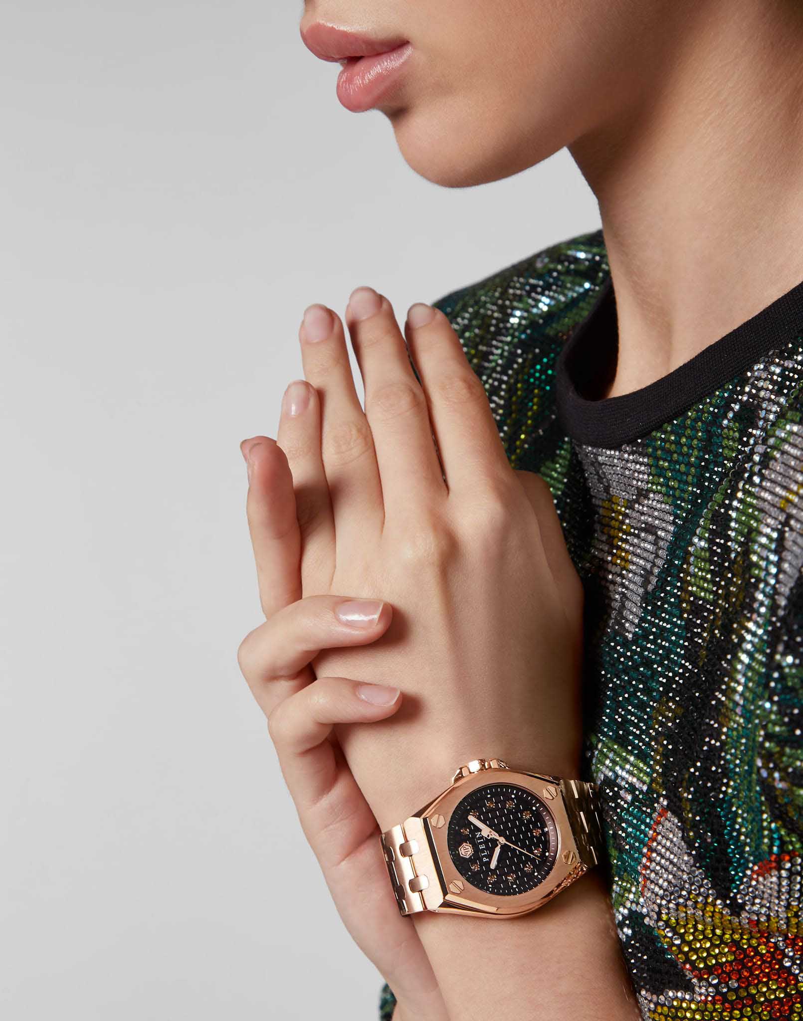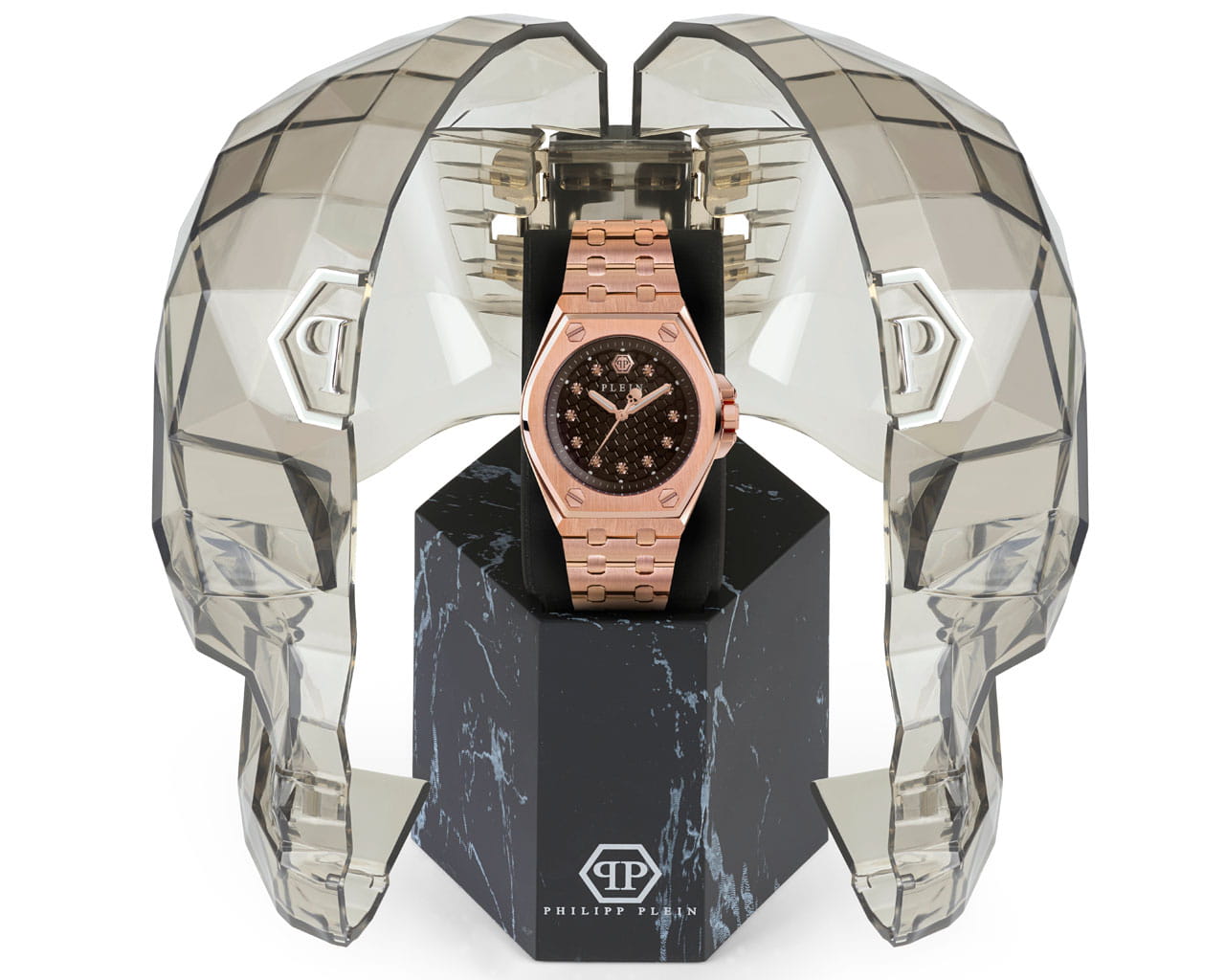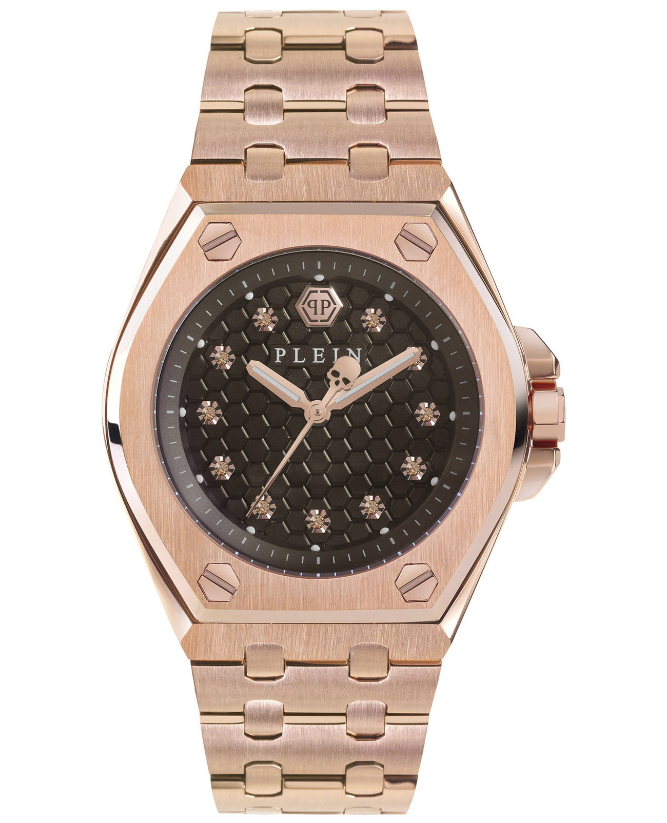 Женские кварцевые часы c кристаллами Preciosa Philipp Plein Extreme Lady PWJAA0522, кварцевый механизм с высокой точностью. Класс водозащиты: 50 метров, позволит защитить корпус от случайных брызг или капель дождя. Корпус часов изготовлен из стали с IP-покрытиемIP-покрытиеМетод ионного напыления. Демонстрирует повышенную устойчивость к истиранию, окислению и химическим веществам. Под воздействием высокого давления и температуры около 1500°C молекулы металла надёжно соединяются с частицами корпуса часов. цвета розовое золото. Прочное минеральное стеклоМинеральное стеклоМинеральное стекло представляет собой искусственно выращенный минерал кварца. Такое стекло отличается особой устойчивостью к повреждениям и царапинам. Уступает по некоторым качествам сапфировому стеклу. устойчивое к мелким механическим повреждениям. Стальной браслет с IP-покрытиемIP-покрытиеМетод ионного напыления. Демонстрирует повышенную устойчивость к истиранию, окислению и химическим веществам. Под воздействием высокого давления и температуры около 1500°C молекулы металла надёжно соединяются с частицами корпуса часов. цвета розовое золото шириной 23 мм, раскладная застёжкаРаскладная застёжкаТакой тип застёжки используется только на браслетах из металла. Она никогда не раскрывается полностью, происходит разделение на 2 и более частей. Раскладывающая застёжка снизит вероятность потери часов к минимуму..