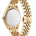Philipp Plein Date Superlative Gent PWMFA0525 - это дерзкие и бескомпромиссные часы, воплощающие бунтарский дух бренда. Диаметр круглого корпуса из прочной нержавеющей стали с PVD-покрытиемPVDУльтратонкое покрытие наносится в технике вакуумного напыления, сочетает в себе нитрид титана особой прочности со слоем золота или оксида хрома. Несёт в себе декоративную или защитную функцию. равен 41 мм. Стальной браслет на застёжке «бабочка» с кнопкамиЗастёжка "бабочка"Такой вид застёжки дополняется предохранителями, помогающими избежать случайного раскрытия браслета. Обладают изящным исполнением. обеспечивает надёжную фиксацию и комфортное ношение. Метки в виде кристаллов Preciosa. Минеральное стеклоМинеральное стеклоМинеральное стекло представляет собой искусственно выращенный минерал кварца. Такое стекло отличается особой устойчивостью к повреждениям и царапинам. Уступает по некоторым качествам сапфировому стеклу. защищает циферблат от царапин. Люминесцентное покрытиеЛюминесцентное покрытиеПозволяет считывать показания времени в темноте. Производители наносят на стрелки, часовые индексы, безель или поверхность циферблата светонакопительный состав, дающий холодное свечение. стрелок и меток позволит следить за временем даже в полной темноте. Граненая заводная головка. Влагозащита: 50 метров, позволит защитить корпус от случайных брызг или капель дождя. Идеальный аксессуар для тех, кто ценит индивидуальность и не боится выделяться из толпы.