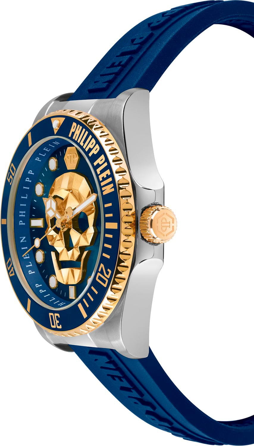 Яркие мужские часы с минеральным стекломМинеральное стеклоМинеральное стекло представляет собой искусственно выращенный минерал кварца. Такое стекло отличается особой устойчивостью к повреждениям и царапинам. Уступает по некоторым качествам сапфировому стеклу. Philipp Plein The Skull PWOAA0222, кварцевый механизм с высокой точностью. Класс водозащиты: 50 метров, позволит защитить корпус от случайных брызг или капель дождя. Корпус часов изготовлен из стали с IP-покрытиемIP-покрытиеМетод ионного напыления. Демонстрирует повышенную устойчивость к истиранию, окислению и химическим веществам. Под воздействием высокого давления и температуры около 1500°C молекулы металла надёжно соединяются с частицами корпуса часов.. Стрелки и метки с люминесцентным покрытиемЛюминесцентное покрытиеПозволяет считывать показания времени в темноте. Производители наносят на стрелки, часовые индексы, безель или поверхность циферблата светонакопительный состав, дающий холодное свечение.. Часы с раскладной застёжкойРаскладная застёжкаТакой тип застёжки используется только на браслетах из металла. Она никогда не раскрывается полностью, происходит разделение на 2 и более частей. Раскладывающая застёжка снизит вероятность потери часов к минимуму.