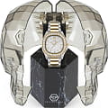 Яркие женские часы с минеральным стекломМинеральное стеклоМинеральное стекло представляет собой искусственно выращенный минерал кварца. Такое стекло отличается особой устойчивостью к повреждениям и царапинам. Уступает по некоторым качествам сапфировому стеклу. Philipp Plein PWTAA0523, кварцевый механизм с высокой точностью. Класс водозащиты: 50 метров, позволит защитить корпус от случайных брызг или капель дождя. Корпус часов изготовлен из стали с IP-покрытиемIP-покрытиеМетод ионного напыления. Демонстрирует повышенную устойчивость к истиранию, окислению и химическим веществам. Под воздействием высокого давления и температуры около 1500°C молекулы металла надёжно соединяются с частицами корпуса часов.. Стрелки и метки с люминесцентным покрытиемЛюминесцентное покрытиеПозволяет считывать показания времени в темноте. Производители наносят на стрелки, часовые индексы, безель или поверхность циферблата светонакопительный состав, дающий холодное свечение.. Стальной корпус с геометричным безелем, инкрустированным кристаллами. Застёжка бабочка с кнопкамиЗастёжка "бабочка"Такой вид застёжки дополняется предохранителями, помогающими избежать случайного раскрытия браслета. Обладают изящным исполнением.