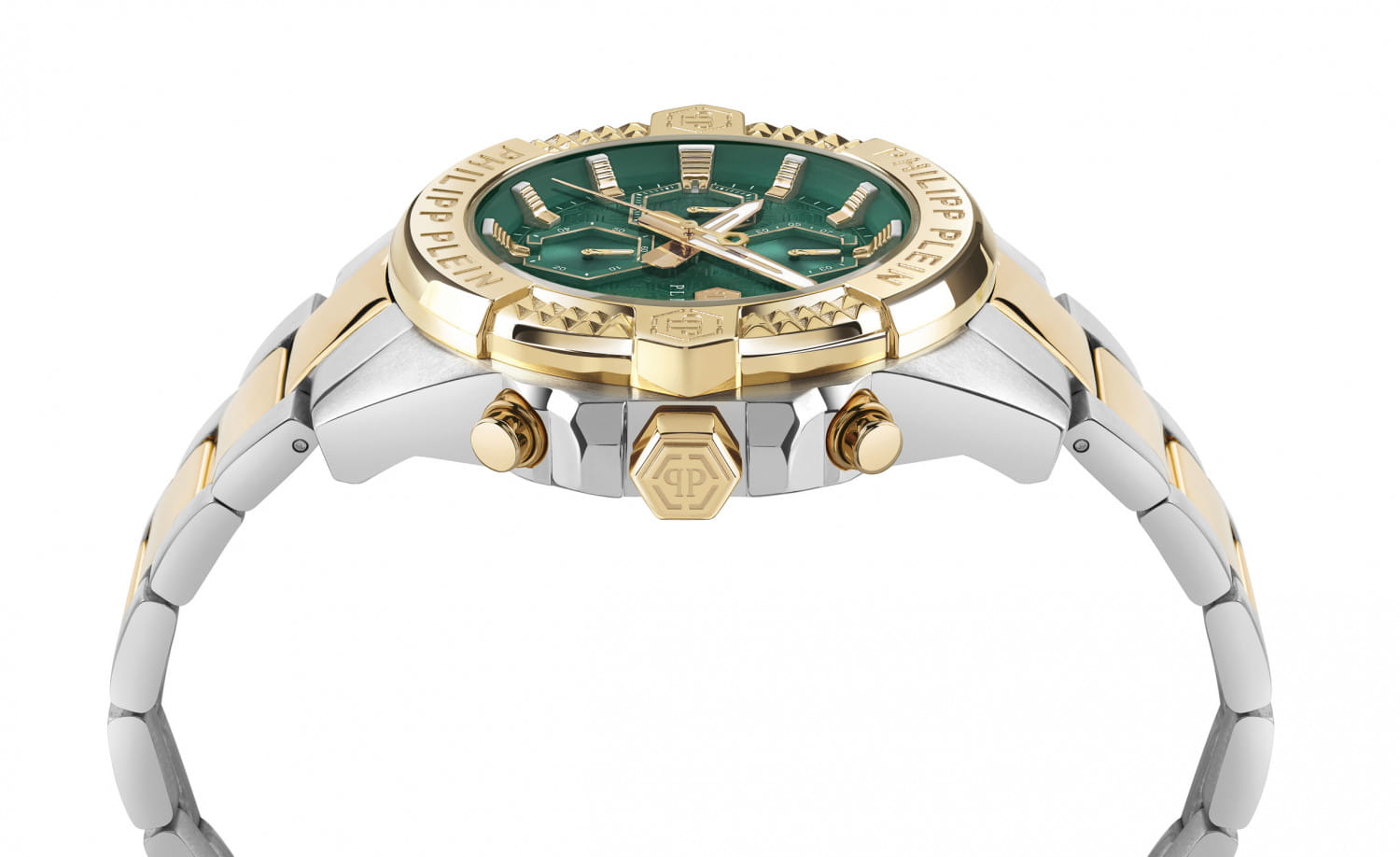 Philipp Plein The $kull Chrono PWWFA0525 - яркие часы-хронографХронографФункция позволяет измерять отрезки времени с особой точностью: часы, минуты, секунды. Верным признаком хронографа является наличие на циферблате 3 дополнительных окошек-счётчиков. в революционном дизайне несомненно добавят вам выразительности и станут главным акцентом вашего стильного образа. Мужские кварцевые часы с высокой точностью. Круглый стальной корпус серебристого цвета, диаметром 44 мм. Метки в виде штрихов. БезельБезельВнешний ободок, закрепляющий стекло. В спортивных часах так называется поворотное кольцо с делениями на циферблате, выполняет роль таймера – замеряет отрезки времени на шкале. Неподвижный безель – элемент декора. Однонаправленно вращающийся безель на дайверских часах позволяет фиксировать моменты погружения и выныривания на поверхность. с PVD-покрытиемPVDУльтратонкое покрытие наносится в технике вакуумного напыления, сочетает в себе нитрид титана особой прочности со слоем золота или оксида хрома. Несёт в себе декоративную или защитную функцию. золотистого цвета. Минеральное стеклоМинеральное стеклоМинеральное стекло представляет собой искусственно выращенный минерал кварца. Такое стекло отличается особой устойчивостью к повреждениям и царапинам. Уступает по некоторым качествам сапфировому стеклу. защищает циферблат от царапин. Люминесцентное покрытиеЛюминесцентное покрытиеПозволяет считывать показания времени в темноте. Производители наносят на стрелки, часовые индексы, безель или поверхность циферблата светонакопительный состав, дающий холодное свечение. стрелок и меток позволит следить за временем даже в полной темноте. Окошко даты находится в положении 4 часа. Стальной браслет с частичным PVD-покрытиемPVDУльтратонкое покрытие наносится в технике вакуумного напыления, сочетает в себе нитрид титана особой прочности со слоем золота или оксида хрома. Несёт в себе декоративную или защитную функцию. на застёжке-бабочке с кнопкамиЗастёжка "бабочка"Такой вид застёжки дополняется предохранителями, помогающими избежать случайного раскрытия браслета. Обладают изящным исполнением. , обеспечивает комфортное ношение. Граненая заводная головка. Влагозащита: 50 метров, позволит защитить корпус от случайных брызг или капель дождя. Идеальный аксессуар для тех, кто ценит индивидуальность и не боится выделяться из толпы.