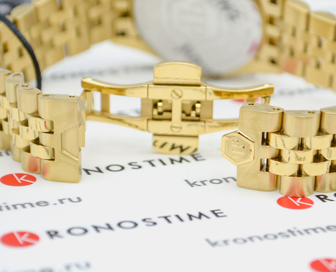 Яркие женские часы Philipp Plein Date Superlative PWYAA0323 с минеральным стекломМинеральное стеклоМинеральное стекло представляет собой искусственно выращенный минерал кварца. Такое стекло отличается особой устойчивостью к повреждениям и царапинам. Уступает по некоторым качествам сапфировому стеклу.. Особенные часы для особенных женщин! Ослепительный аксессуар, демонстрирующий роскошь и изысканность.Часы с круглым стальным корпусом с IP-покрытиемIP-покрытиеМетод ионного напыления. Демонстрирует повышенную устойчивость к истиранию, окислению и химическим веществам. Под воздействием высокого давления и температуры около 1500°C молекулы металла надёжно соединяются с частицами корпуса часов.. Перламутровый циферблат с метками в виде точек, украшенных кристаллами. Люминесцентное покрытиеЛюминесцентное покрытиеПозволяет считывать показания времени в темноте. Производители наносят на стрелки, часовые индексы, безель или поверхность циферблата светонакопительный состав, дающий холодное свечение. стрелок. Окошко даты с увеличительным стеклом находится в положении 3 часа. Рифленая заводная головка. Стальной браслет на застёжке бабочка с кнопкамиЗастёжка "бабочка"Такой вид застёжки дополняется предохранителями, помогающими избежать случайного раскрытия браслета. Обладают изящным исполнением.