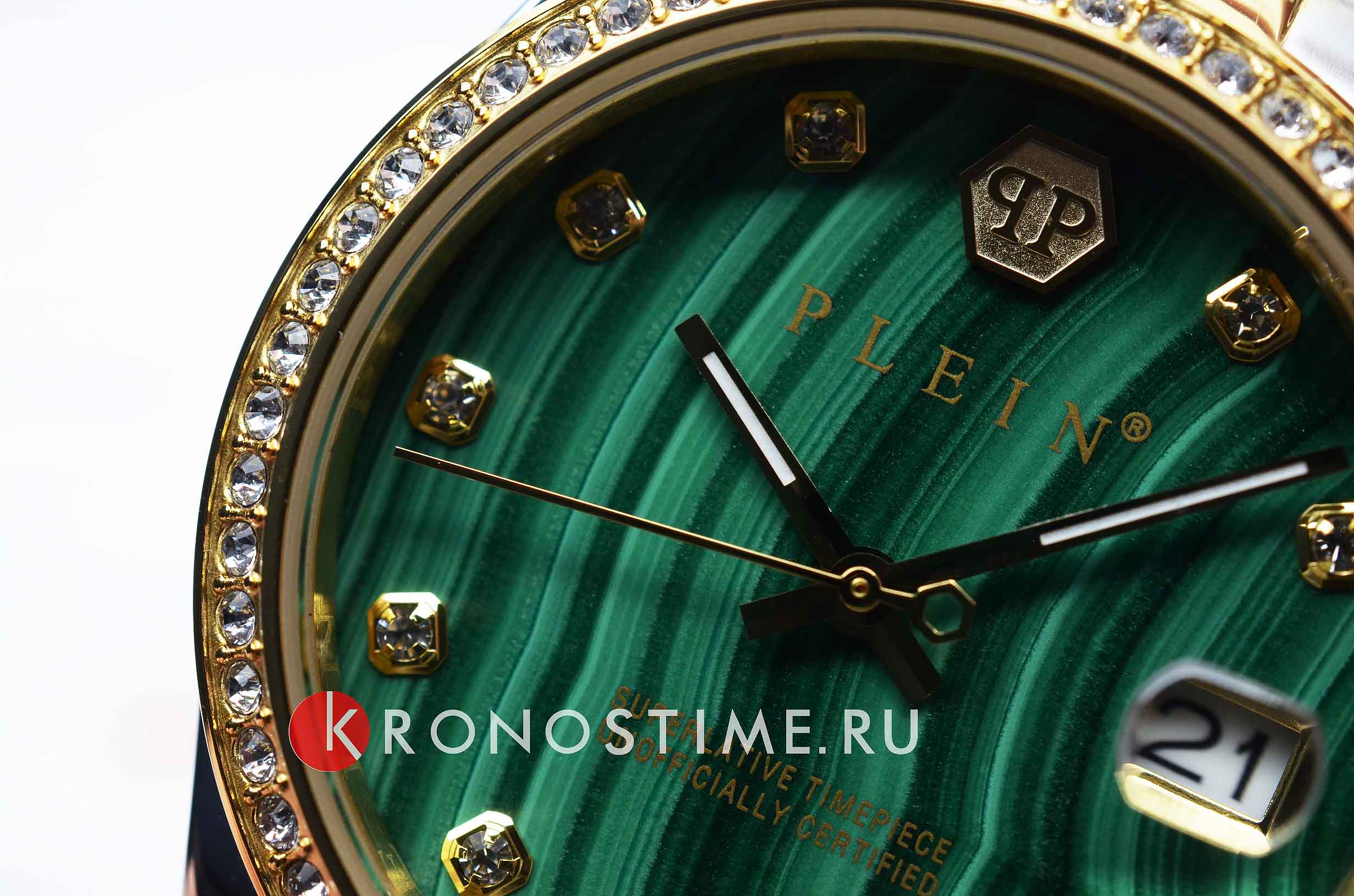 Яркие женские часы Philipp Plein Date Superlative PWYAA0523 c с минеральным стекломМинеральное стеклоМинеральное стекло представляет собой искусственно выращенный минерал кварца. Такое стекло отличается особой устойчивостью к повреждениям и царапинам. Уступает по некоторым качествам сапфировому стеклу.. Особенные часы для особенных женщин! Ослепительный аксессуар, демонстрирующий роскошь и изысканность.Часы с круглым стальным корпусом с IP-покрытиемIP-покрытиеМетод ионного напыления. Демонстрирует повышенную устойчивость к истиранию, окислению и химическим веществам. Под воздействием высокого давления и температуры около 1500°C молекулы металла надёжно соединяются с частицами корпуса часов.. Перламутровый циферблат с метками в виде точек, украшенных кристаллами. Люминесцентное покрытиеЛюминесцентное покрытиеПозволяет считывать показания времени в темноте. Производители наносят на стрелки, часовые индексы, безель или поверхность циферблата светонакопительный состав, дающий холодное свечение. стрелок. Окошко даты с увеличительным стеклом находится в положении 3 часа. Рифленая заводная головка. Стальной браслет на застёжке бабочка с кнопкамиЗастёжка "бабочка"Такой вид застёжки дополняется предохранителями, помогающими избежать случайного раскрытия браслета. Обладают изящным исполнением.