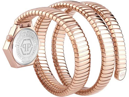 Яркие женские часы Philipp Plein Snake Hexagon PWZAA0523 с минеральным стекломМинеральное стеклоМинеральное стекло представляет собой искусственно выращенный минерал кварца. Такое стекло отличается особой устойчивостью к повреждениям и царапинам. Уступает по некоторым качествам сапфировому стеклу.. Символ неотразимого гламура и роскоши. Соблазнительное воплощение легендарной утонченности, такой аксессуар - неотразимый символ, который вселяет в женщин уверенность и силу. Авангардная геометрия, чувственные изгибы, изысканная привлекательность и драгоценные мысли - все это сделает вас непревзойденной. Корпус изготовлен из стали с IP-покрытиемIP-покрытиеМетод ионного напыления. Демонстрирует повышенную устойчивость к истиранию, окислению и химическим веществам. Под воздействием высокого давления и температуры около 1500°C молекулы металла надёжно соединяются с частицами корпуса часов. цвета розовое золото. Неподвижный безель украшен кристаллами