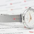 Кварцевые часы Водостойкость WR 50 Часы, минуты Корпус выполнен из нержавеющей стали Диаметр корпуса 33 мм Минеральное стекло Браслет миланского плетения, выполнен из нержавеющей стали Часы украшены кристаллами