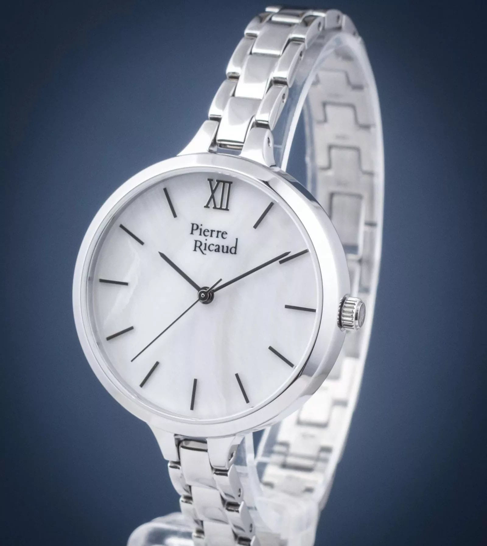 Женские кварцевые наручные часы с минеральным стекломМинеральное стеклоМинеральное стекло представляет собой искусственно выращенный минерал кварца. Такое стекло отличается особой устойчивостью к повреждениям и царапинам. Уступает по некоторым качествам сапфировому стеклу. Pierre Ricaud P22055.516FQ, кварцевый механизм с высокой точностью. Класс водозащиты: 30 метров, позволит защитить корпус от случайных брызг или капель дождя. Корпус часов изготовлен из стали.  Стальной браслет на ювелирной застёжке.