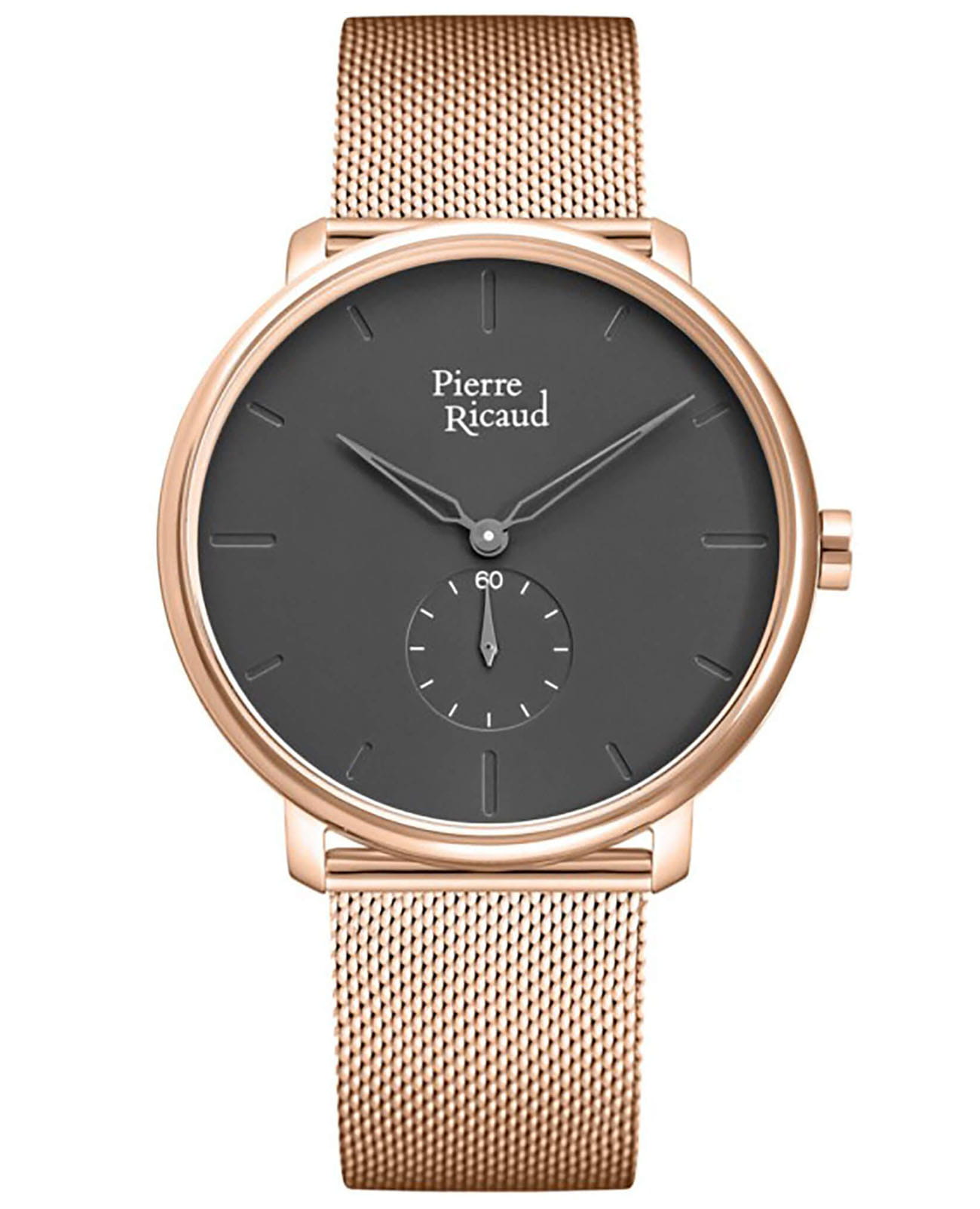Мужские часы с минеральным стекломМинеральное стеклоМинеральное стекло представляет собой искусственно выращенный минерал кварца. Такое стекло отличается особой устойчивостью к повреждениям и царапинам. Уступает по некоторым качествам сапфировому стеклу. Pierre Ricaud P97168.9116Q, кварцевый механизм с высокой точностью. Класс водозащиты: 30 метров, позволит защитить корпус от случайных брызг или капель дождя. Корпус часов изготовлен из стали с IP-покрытиемIP-покрытиеМетод ионного напыления. Демонстрирует повышенную устойчивость к истиранию, окислению и химическим веществам. Под воздействием высокого давления и температуры около 1500°C молекулы металла надёжно соединяются с частицами корпуса часов.. Стальной браслет на раскладной застёжкеРаскладная застёжкаТакой тип застёжки используется только на браслетах из металла. Она никогда не раскрывается полностью, происходит разделение на 2 и более частей. Раскладывающая застёжка снизит вероятность потери часов к минимуму. с IP-покрытиемIP-покрытиеМетод ионного напыления. Демонстрирует повышенную устойчивость к истиранию, окислению и химическим веществам. Под воздействием высокого давления и температуры около 1500°C молекулы металла надёжно соединяются с частицами корпуса часов.. Вынесенная секундная стрелка.