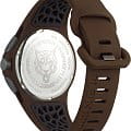 Дерзкий аксессуар со смелым, бунтарским дизайном будет с вами в любом приключении. Мужские часы-хронографХронографФункция позволяет измерять отрезки времени с особой точностью: часы, минуты, секунды. Верным признаком хронографа является наличие на циферблате 3 дополнительных окошек-счётчиков. с секундомеромСекундомерСекундоме́р — прибор, способный измерять интервалы времени с точностью до долей секунды. с тахиметромТахиметрРазмеченная шкала, располагается на ободке или безеле часов. Тахиметр позволяет рассчитать скорость на определённом участке пути, расстояние измеряется в километрах или милях.. Корпус часов изотовлен из нержавеющей стали с IP-покрытиемIP-покрытиеМетод ионного напыления. Демонстрирует повышенную устойчивость к истиранию, окислению и химическим веществам. Под воздействием высокого давления и температуры около 1500°C молекулы металла надёжно соединяются с частицами корпуса часов.. Циферблат с камуфляжным рисунком дополнен паттерном ''след когтей''. Метки в виде штрихов, фирменное лого в виде тигра в положении 12 часов. Окошко даты находится между часовыми метками 4 и 5. Рифленая заводная головка с защитой. Класс водозащиты: 50 метров, позволит защитить корпус от случайных брызг или капель дождя. Силиконовый ремешок на стандартной застежке.