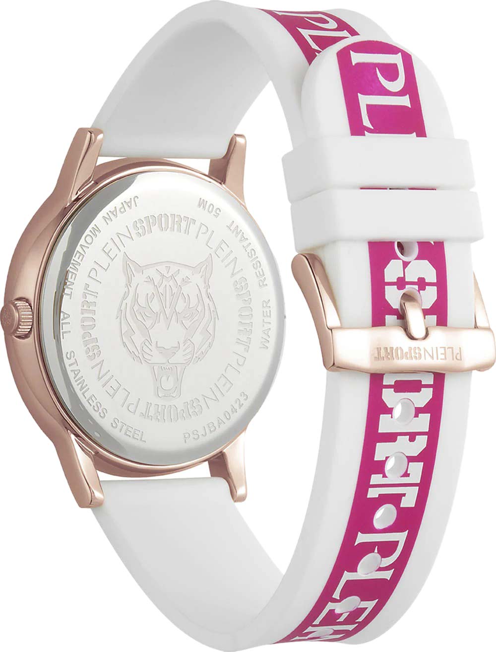Немецкие кварцевые женские часы Plein Sport Legend PSJBA0423, кварцевый механизм с высокой точностью. Класс водозащиты: 50 метров, позволит защитить корпус от случайных брызг или капель дождя. Корпус часов изготовлен из стали с IP-покрытиемIP-покрытиеМетод ионного напыления. Демонстрирует повышенную устойчивость к истиранию, окислению и химическим веществам. Под воздействием высокого давления и температуры около 1500°C молекулы металла надёжно соединяются с частицами корпуса часов.. Стрелки и метки с люминесцентным покрытиемЛюминесцентное покрытиеПозволяет считывать показания времени в темноте. Производители наносят на стрелки, часовые индексы, безель или поверхность циферблата светонакопительный состав, дающий холодное свечение.. Силиконовый ремешок на стандартной застёжке.
